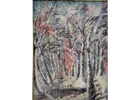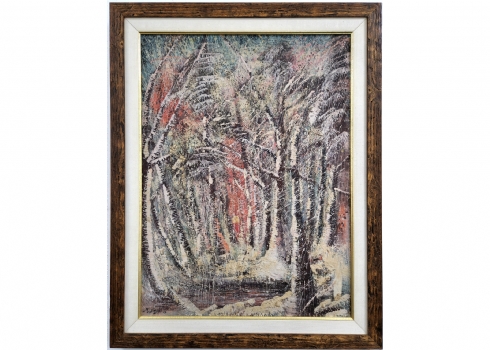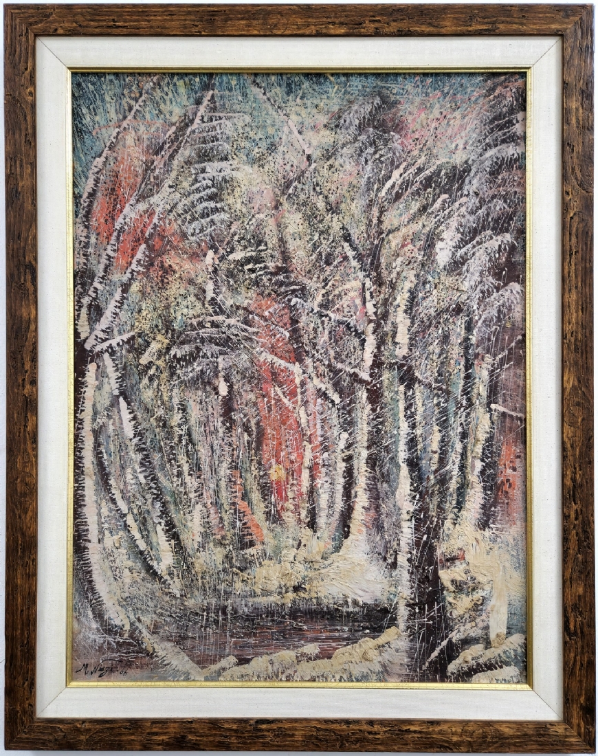 מנושר ניאזי (Manosur Niazi, נ׳ 1936) - 'שביל ביער', שמן על בד, חתום ומתוארך 66