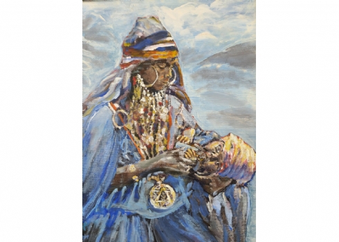 'הגר וישמעאל' - שמן על בד, חתום במונוגרם ומתוארך 2013