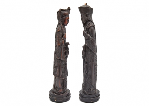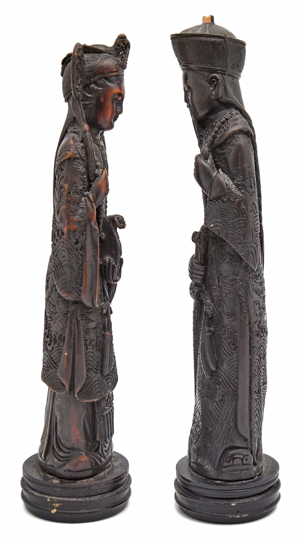 זוג פסלים סיניים בסגנון עתיק עשויים חומר יצוק