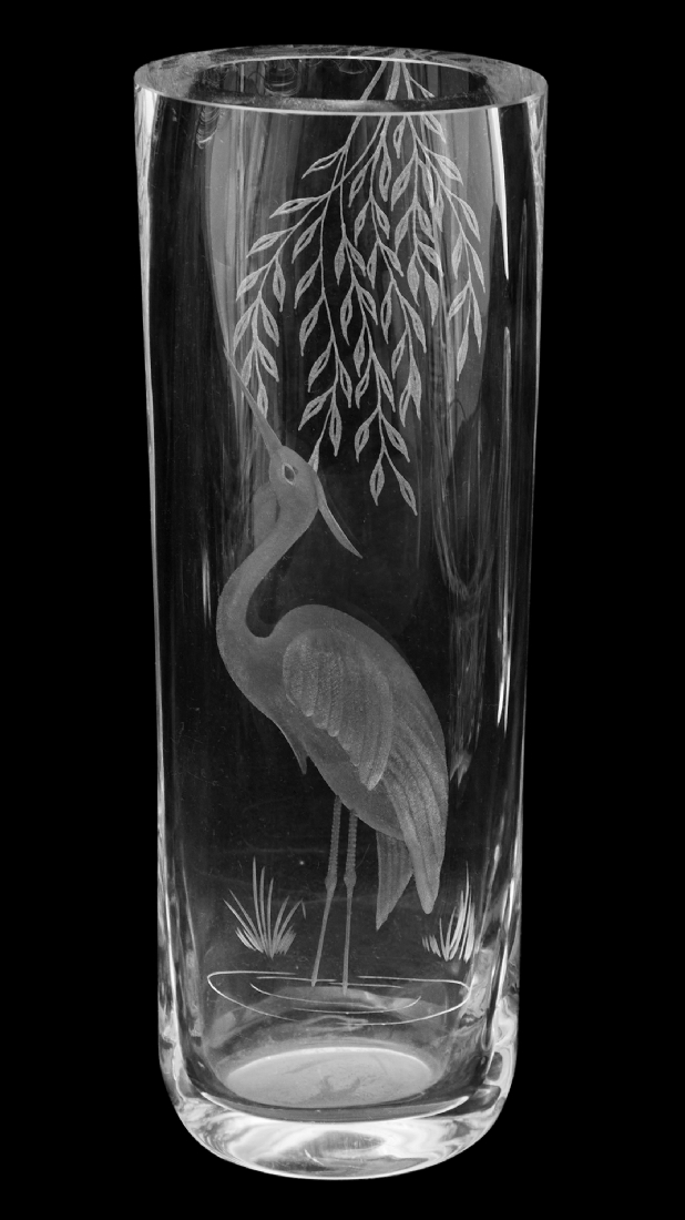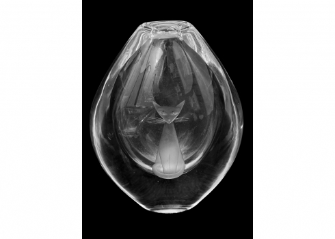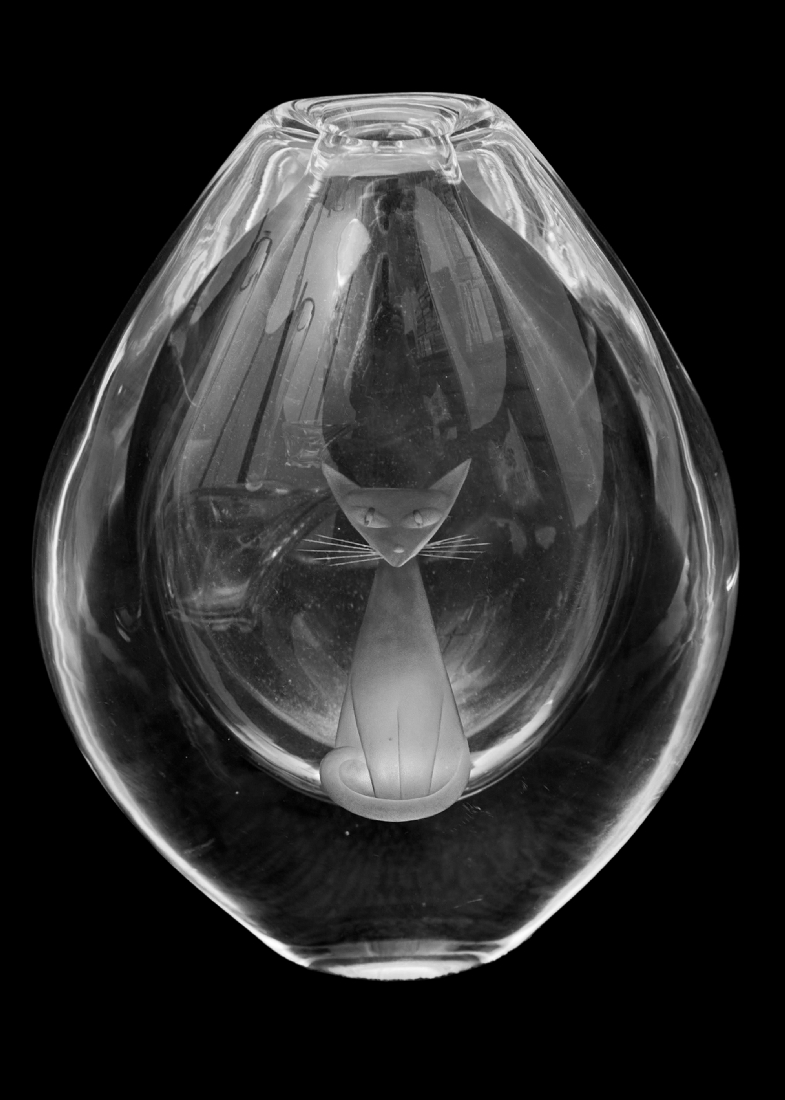 - אגרטל קריסטל של Orrefors, מעוטר בחריטת חתול
