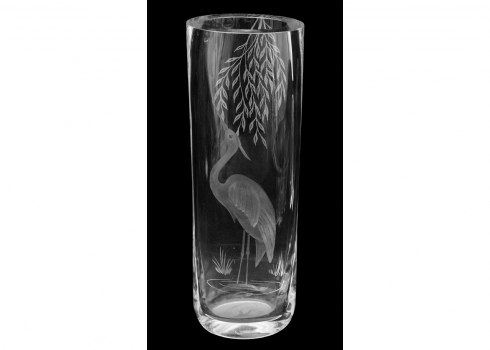 - אגרטל קריסטל Stuart Strathearn עם חריטה של ציפורים