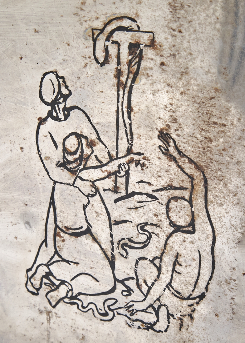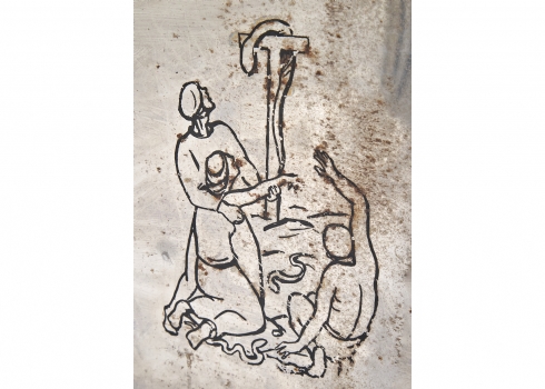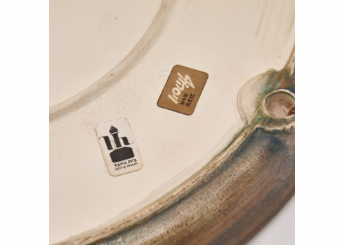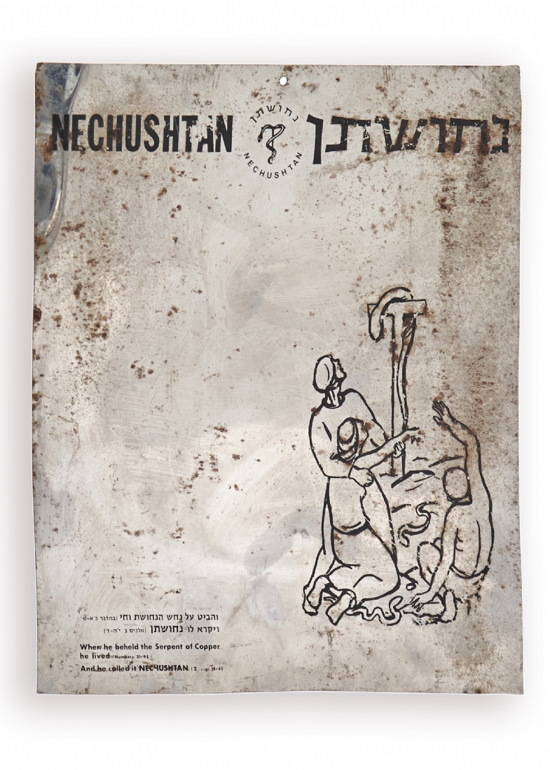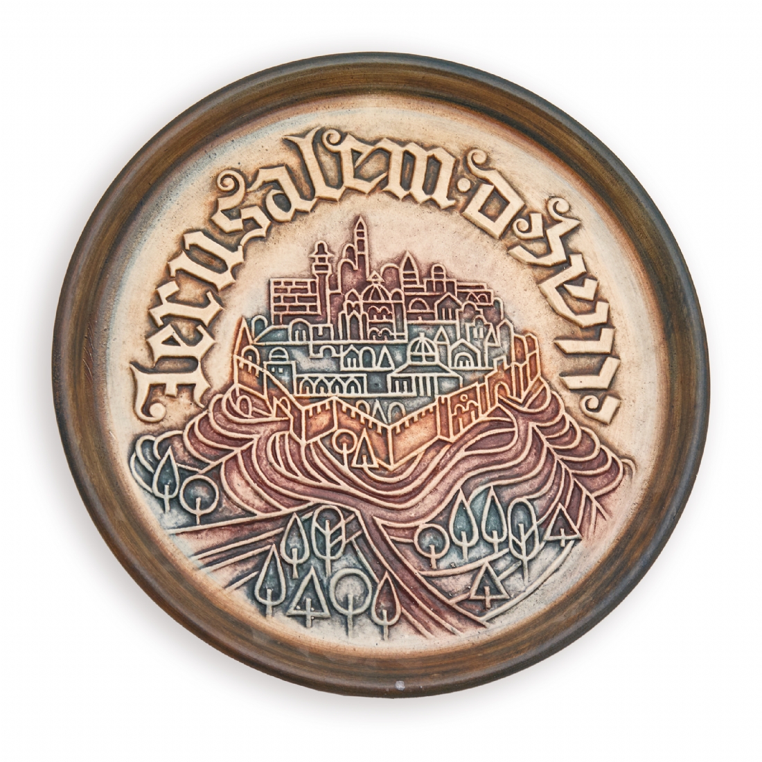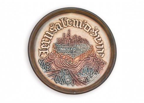 צלחת קיר וינטג' מתוצרת בית היוצר, עיטור תבליט צבעוני של ירושליםלוח מתכת – “נחש הנחושת” (Nechushtan)