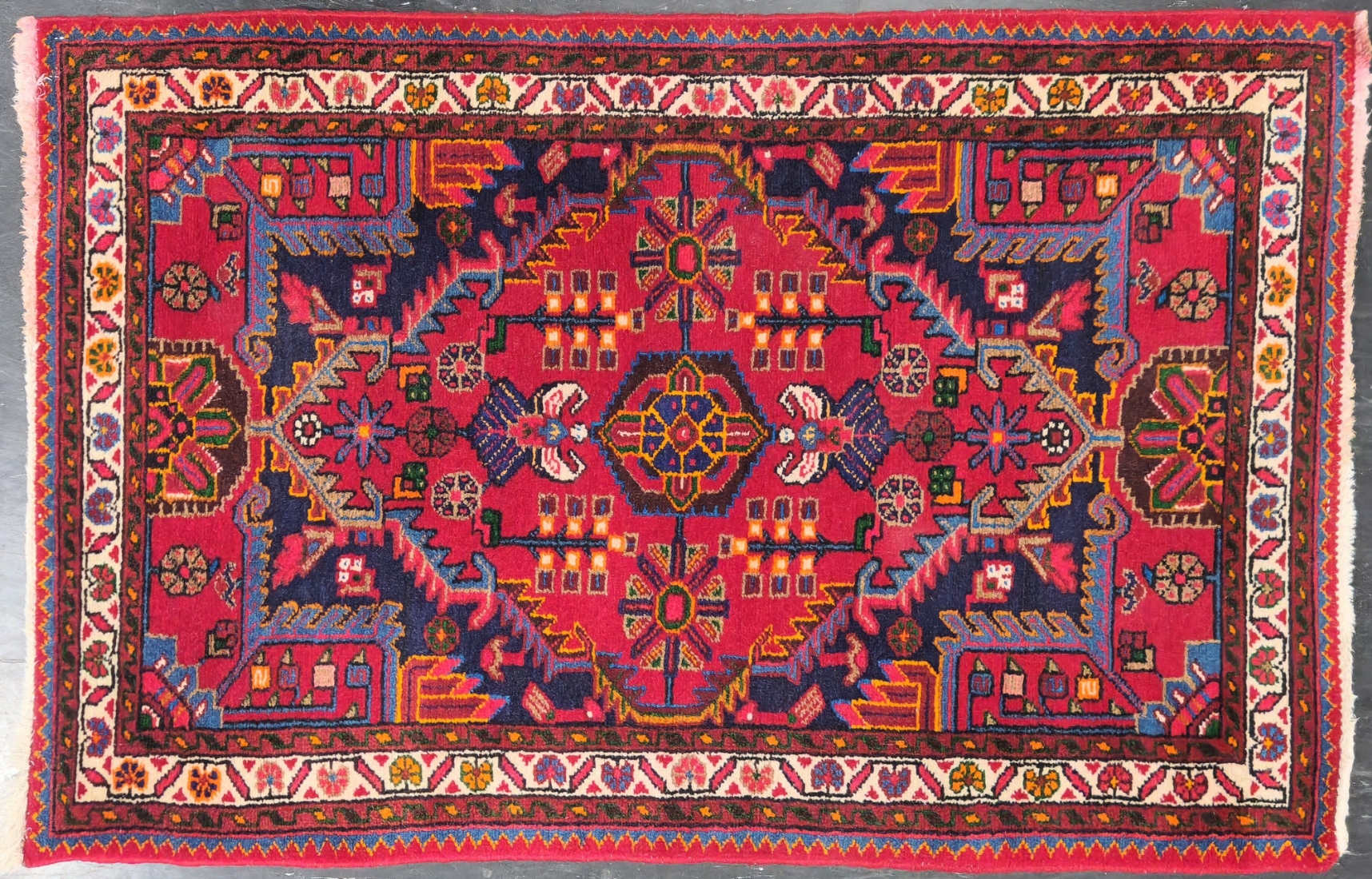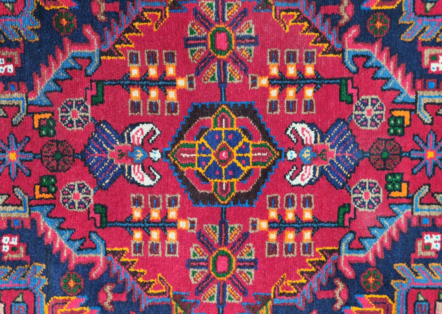 שטיח פרסי בעבודת יד צמר, דגם גאומטרי צבעוני