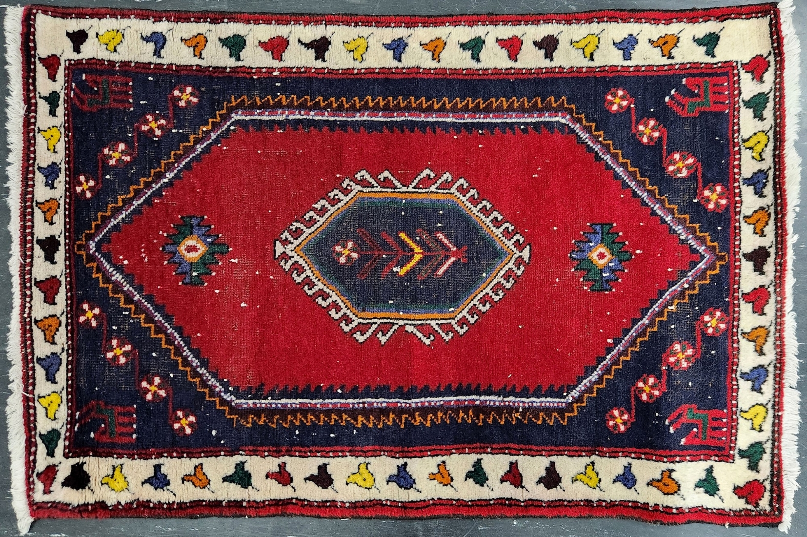 שטיח כפרי בעבודת יד מוטיבים גאומטריים