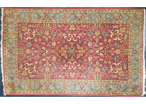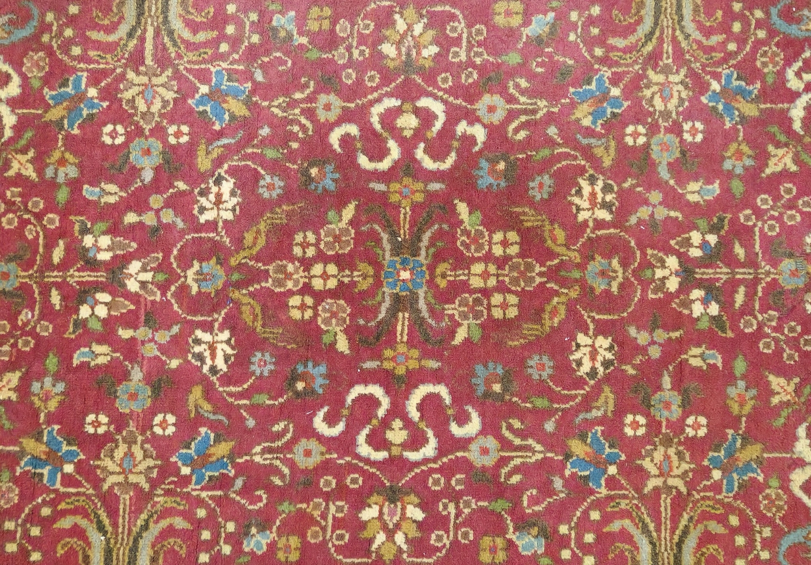 שטיח פרסי מסורתי בעבודת יד - דגם פרחי גן עדן על רקע בורדו