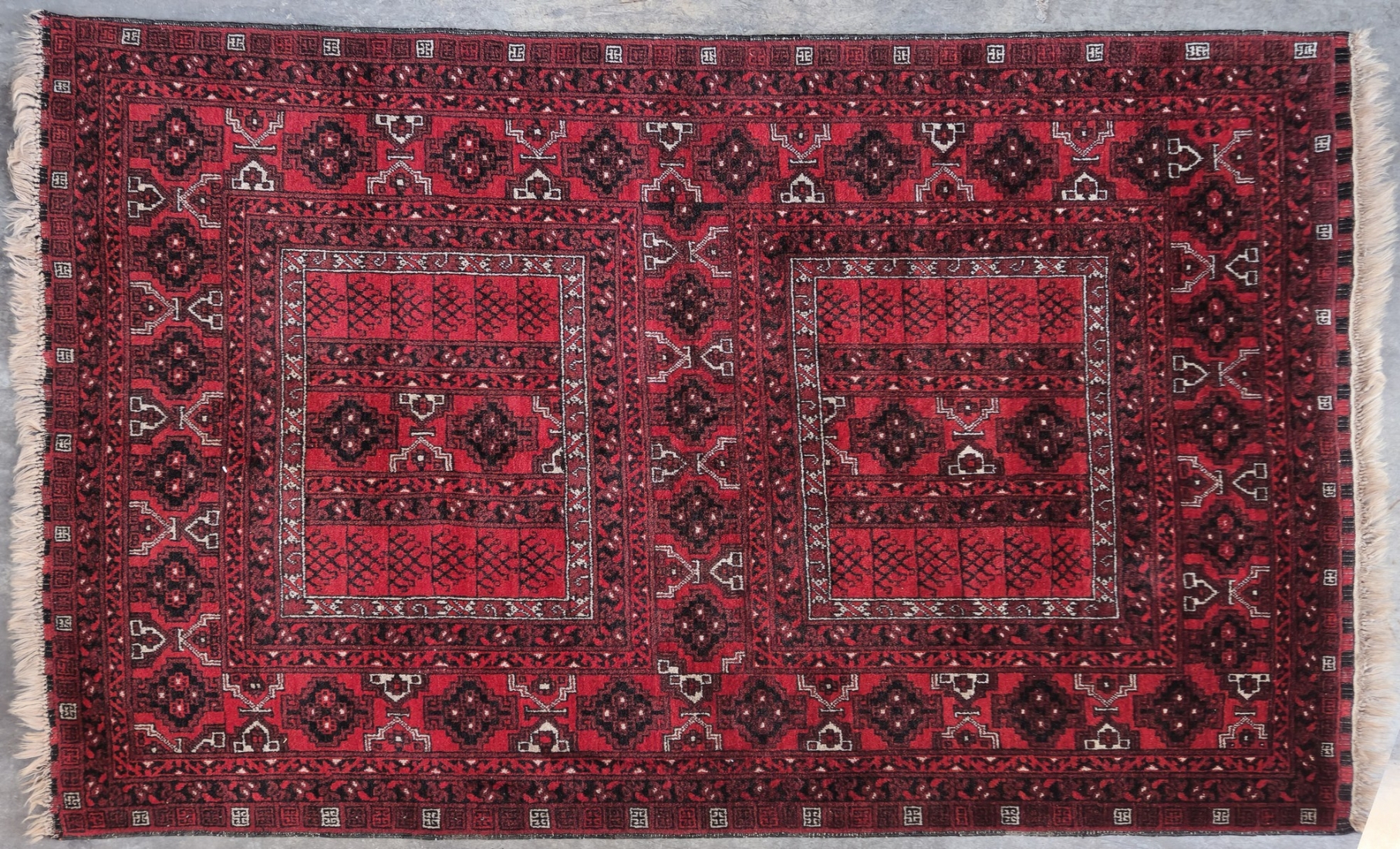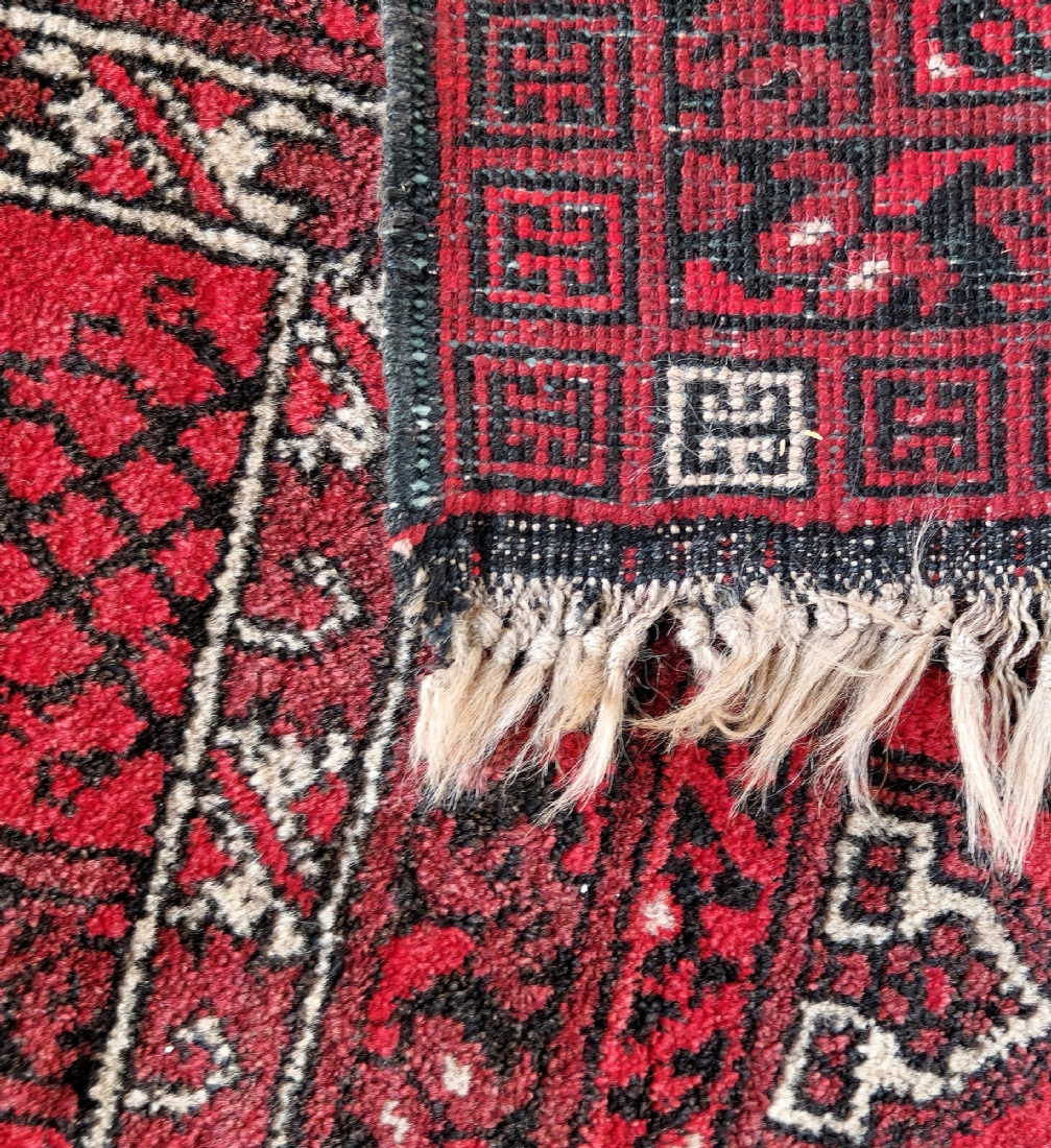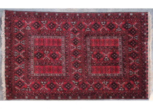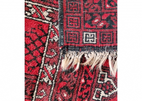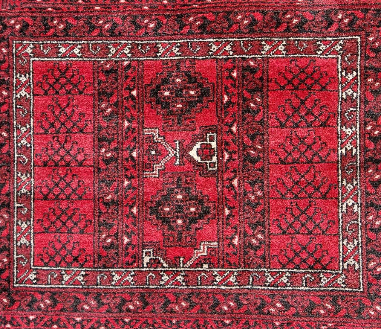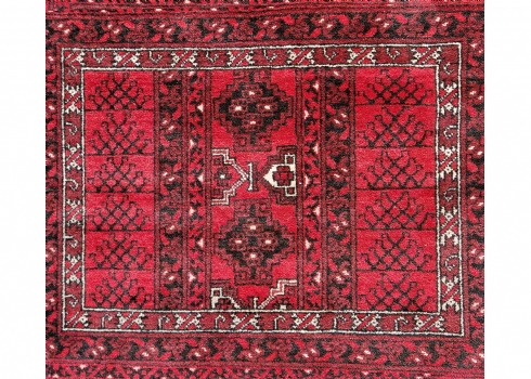 שטיח טורקמני בעבודת-יד דגם גול מסורתי בצבעי אדום עמוק