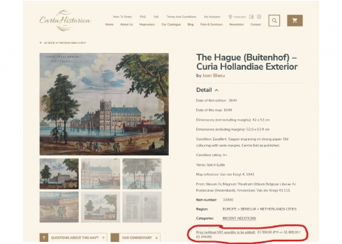 תחריט עתיק מהמאה ה-17 של האג (Buitenhof) – Curia Hollandiae Exterior מאת ג'ואן בלאו (Joan Blaeu ), נדפס בשנת 1649