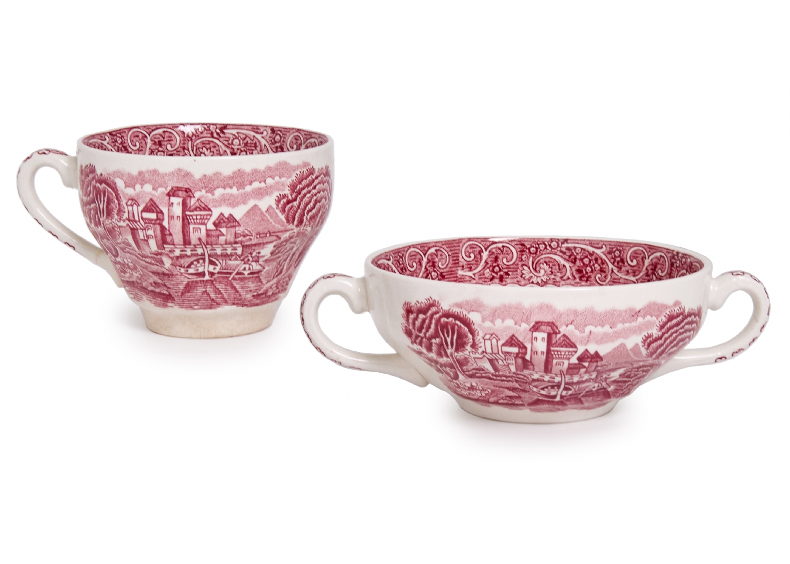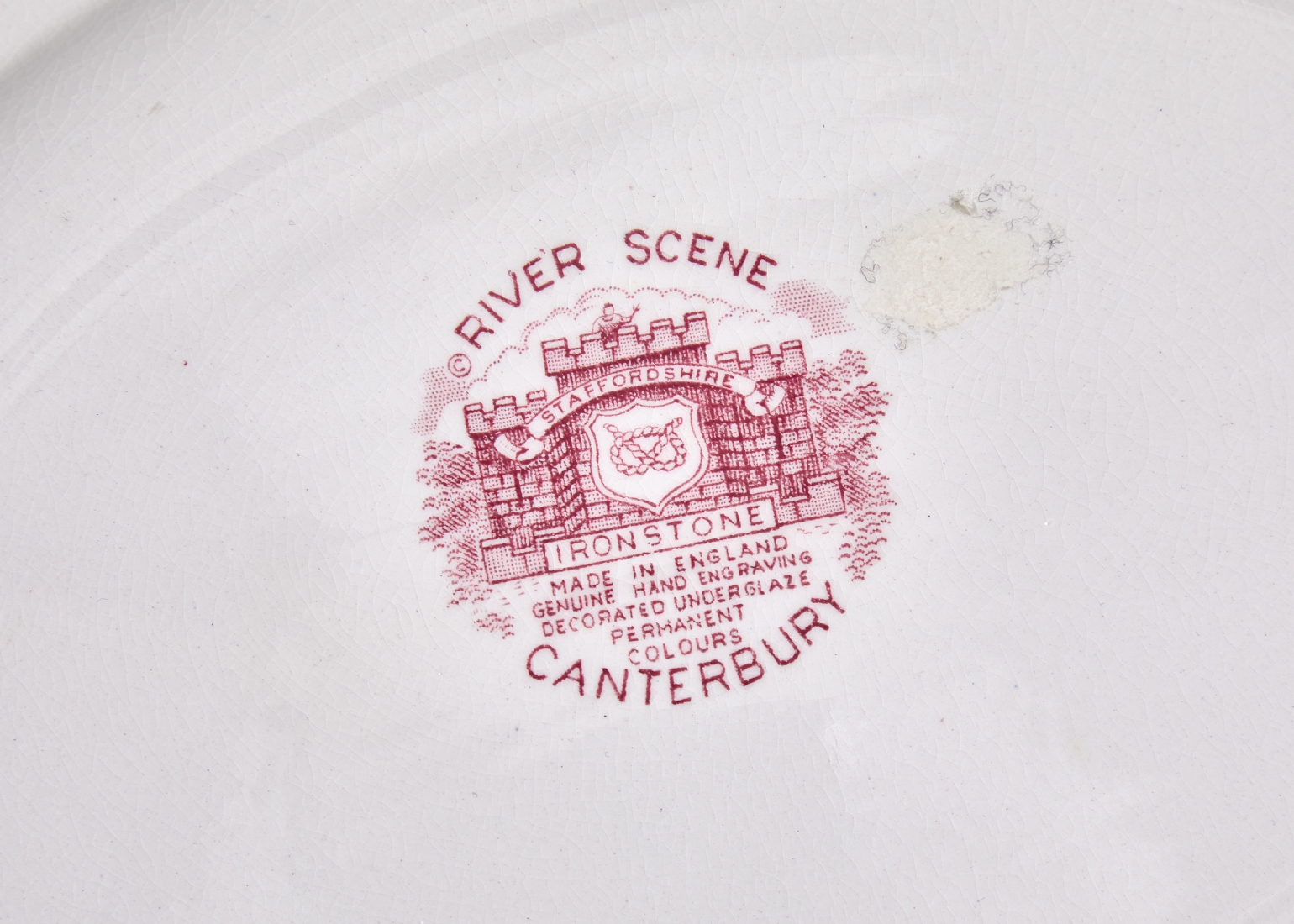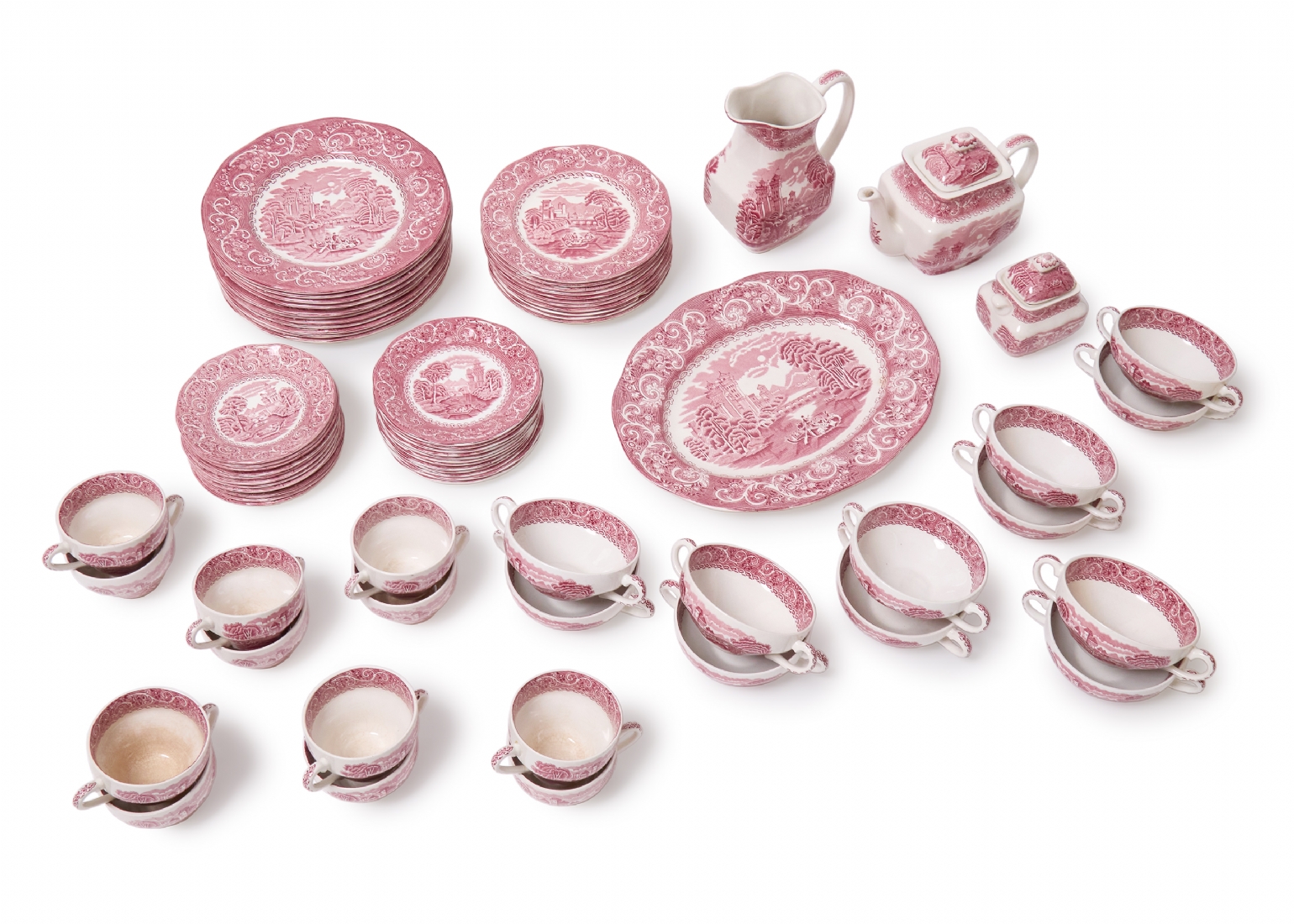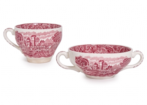 חלקי סט אוכל אנגלי עשוי חרס מעוטר בהדפס מועבר בגוון סגול וורוד, חתום
