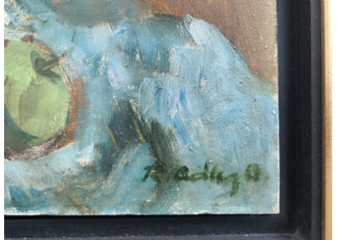 אד אדלר - 'זר פרחים', שמן על בד, חתום