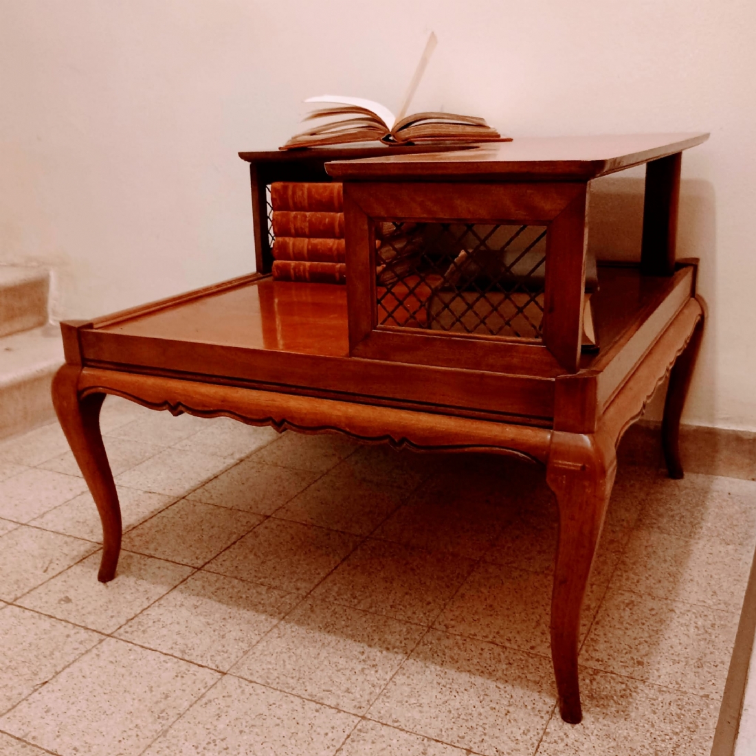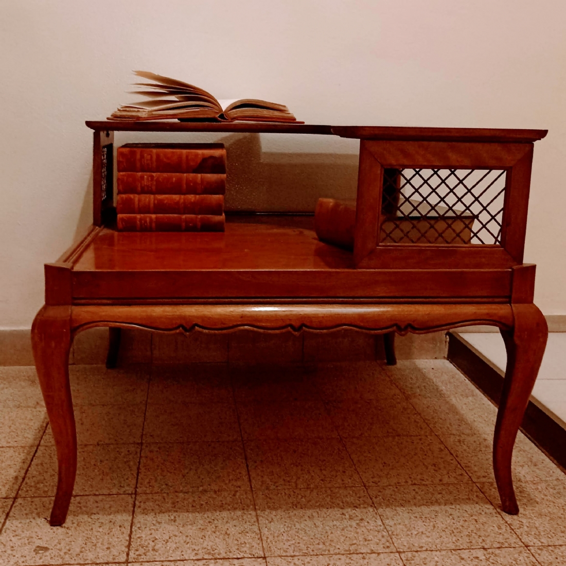 עמדת קריאה ייחודית מעץ מלא – שולחן דו־מפלסי בסגנון לואי XV