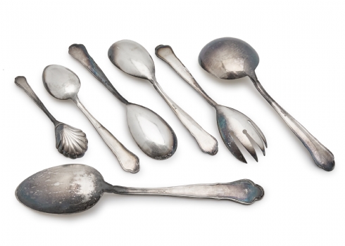 לוט של פרטי סכו"ם כסף גרמנים שונים, חתומים עשויים כסף '800'