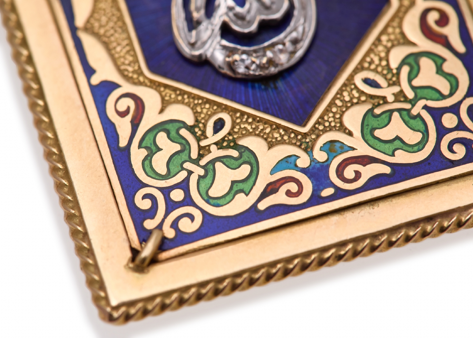 התליון מעוטר אמייל (פגם וחוסר) מכל צד של התליון