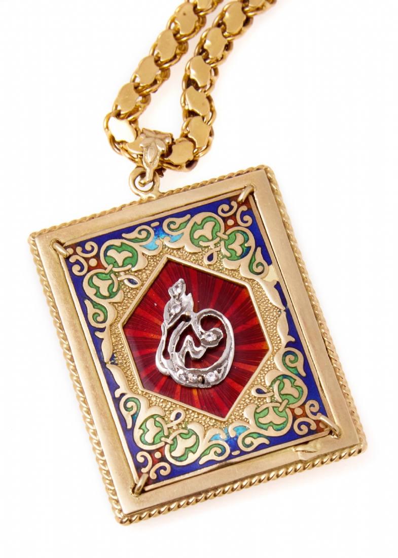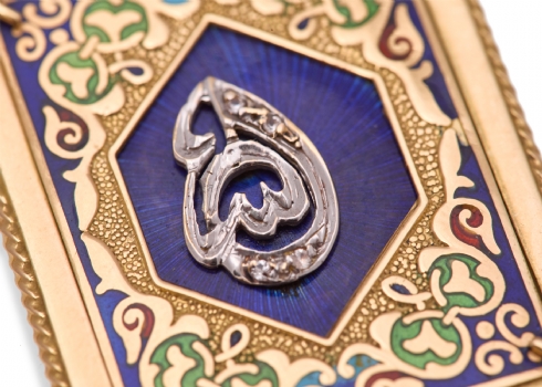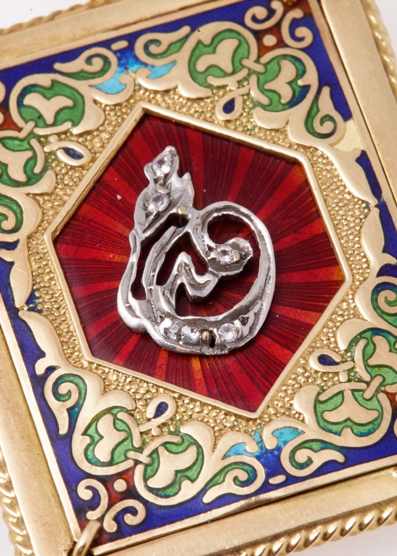 מונוגרם כפי הנראה אותיות מסוגננות בערבית משובץ אבני זירקוניה