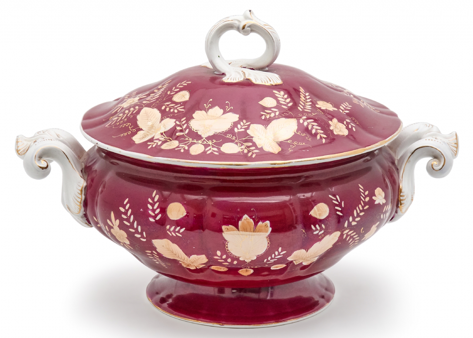 כלי פורצלן רוסי עתיק וגדול למרק מתוצרת גארדנר (Gardner porcelain) חתום