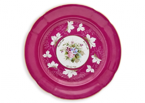 מגש פורצלן רוסי עתיק וגדול מתוצרת גארדנר (Gardner porcelain), מעוטר באמייל ובזהב