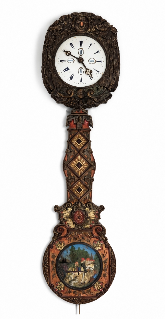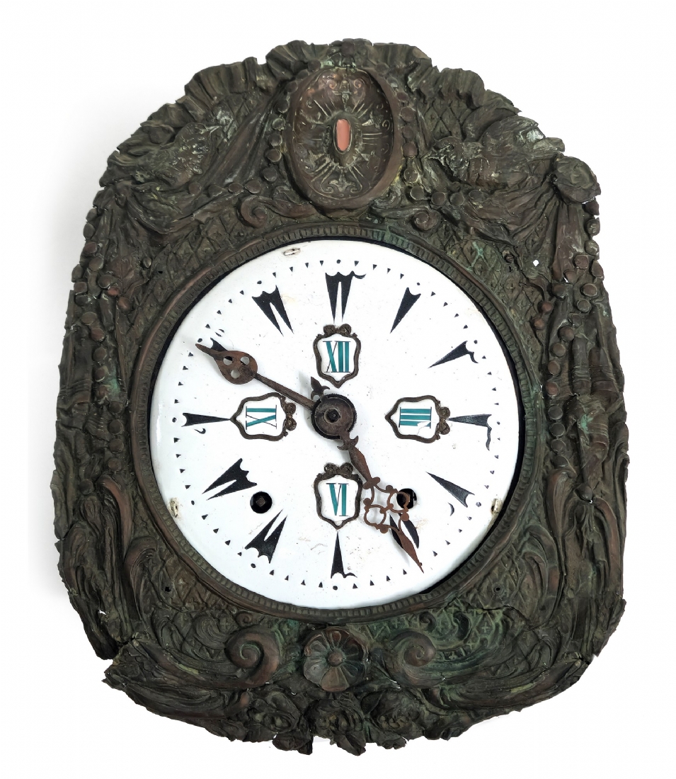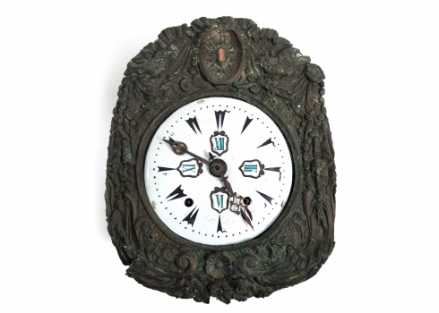 שעון קומטואז' (Comtoise) עתיק מהמאה ה-19, עשוי מתכת וזכוכית