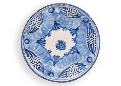 צלחת מיוליקה ספרדית עתיקה, מהמאה ה-19 מאיזור העיר ולנסיה (ספרד)