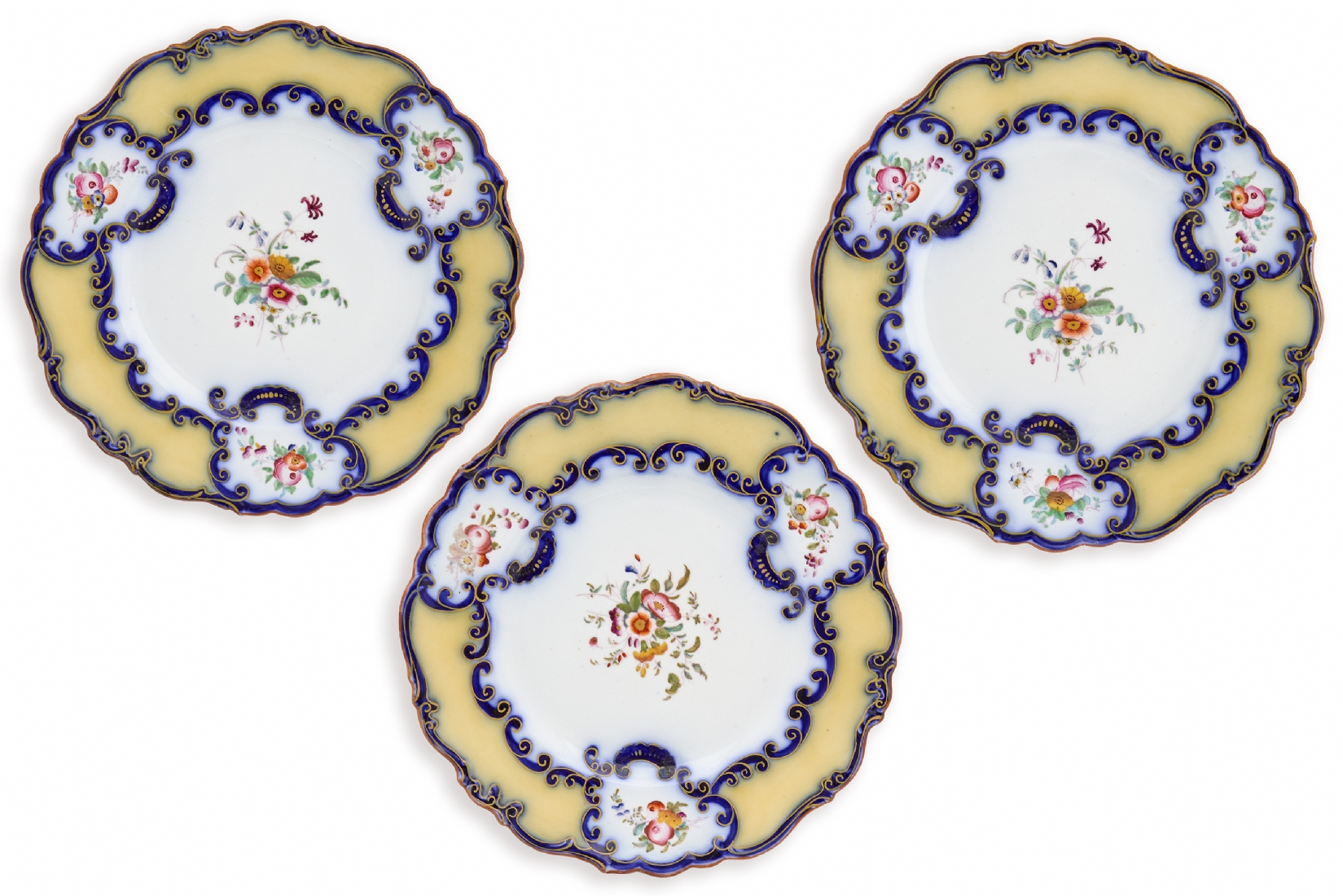שלוש צלחות פורצלן אנגליות עתיקות, מהמאה ה-19