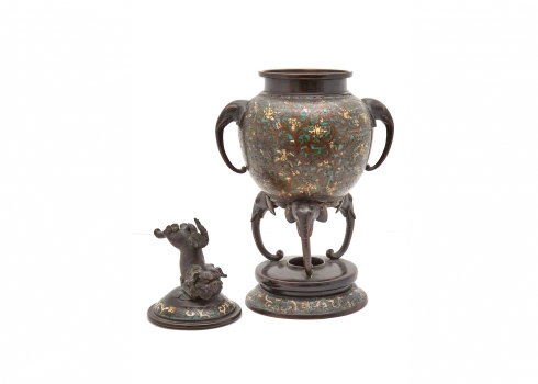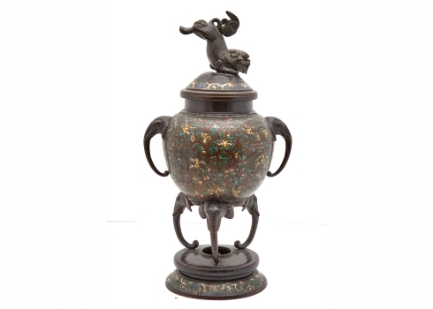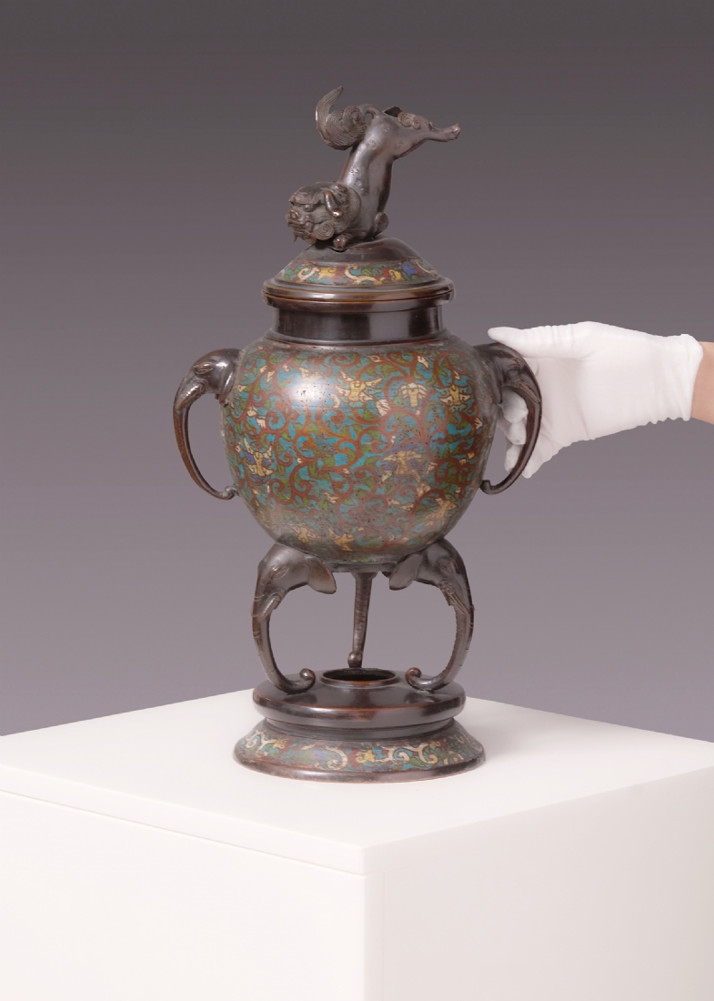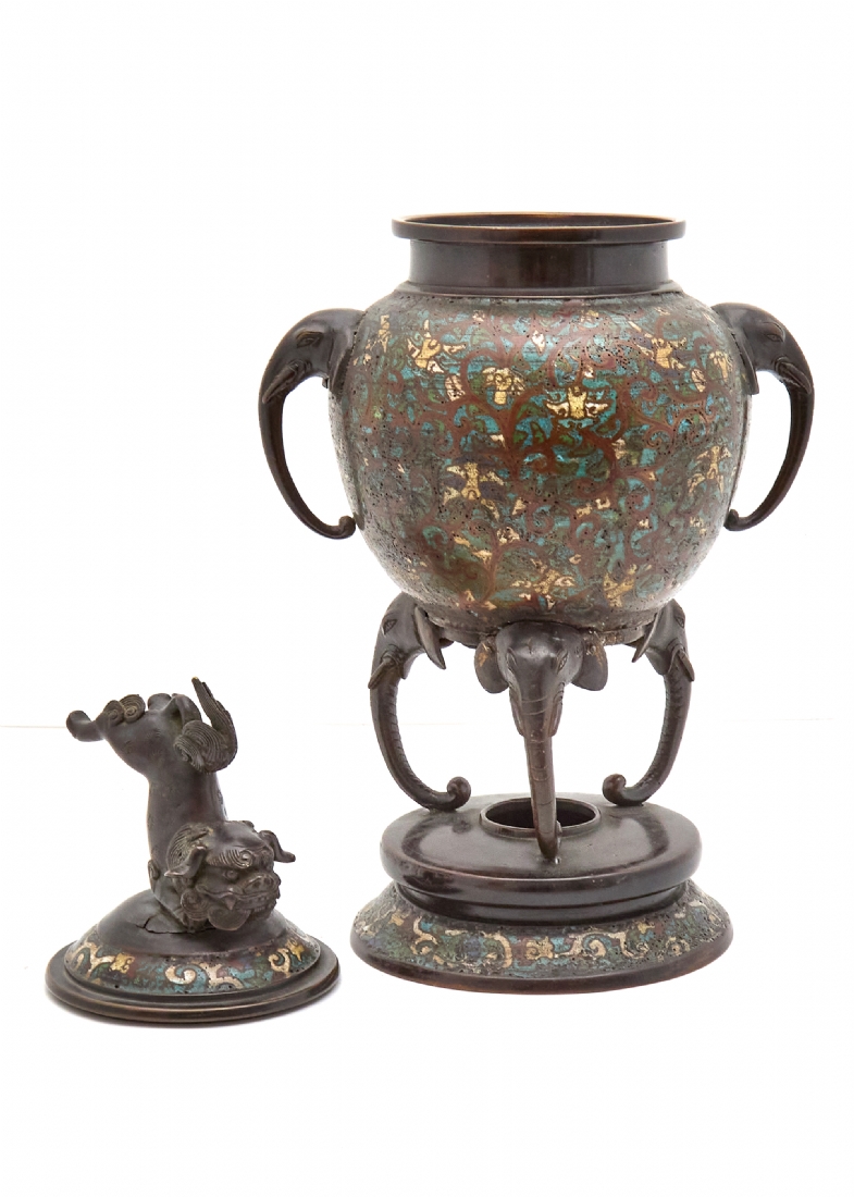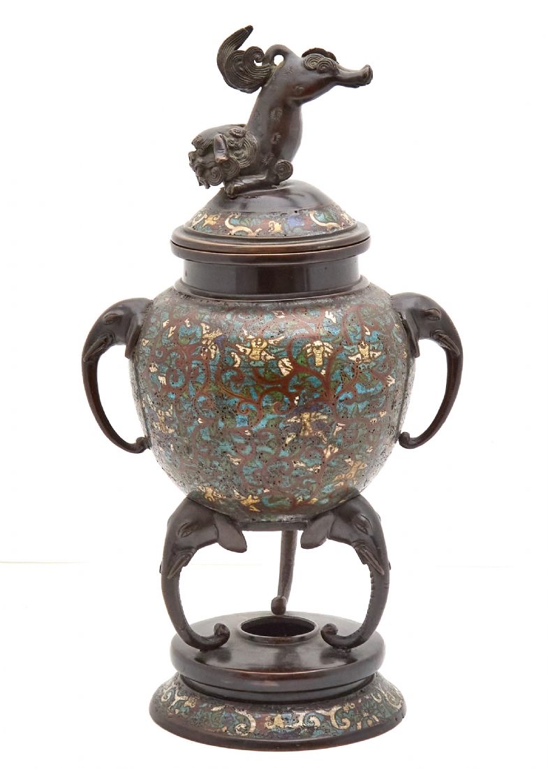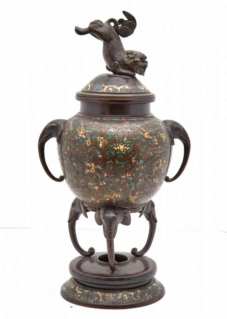 כלי ברונזה סיני עתיק מהמאה ה-19, מעוטר אמייל שמפלבה