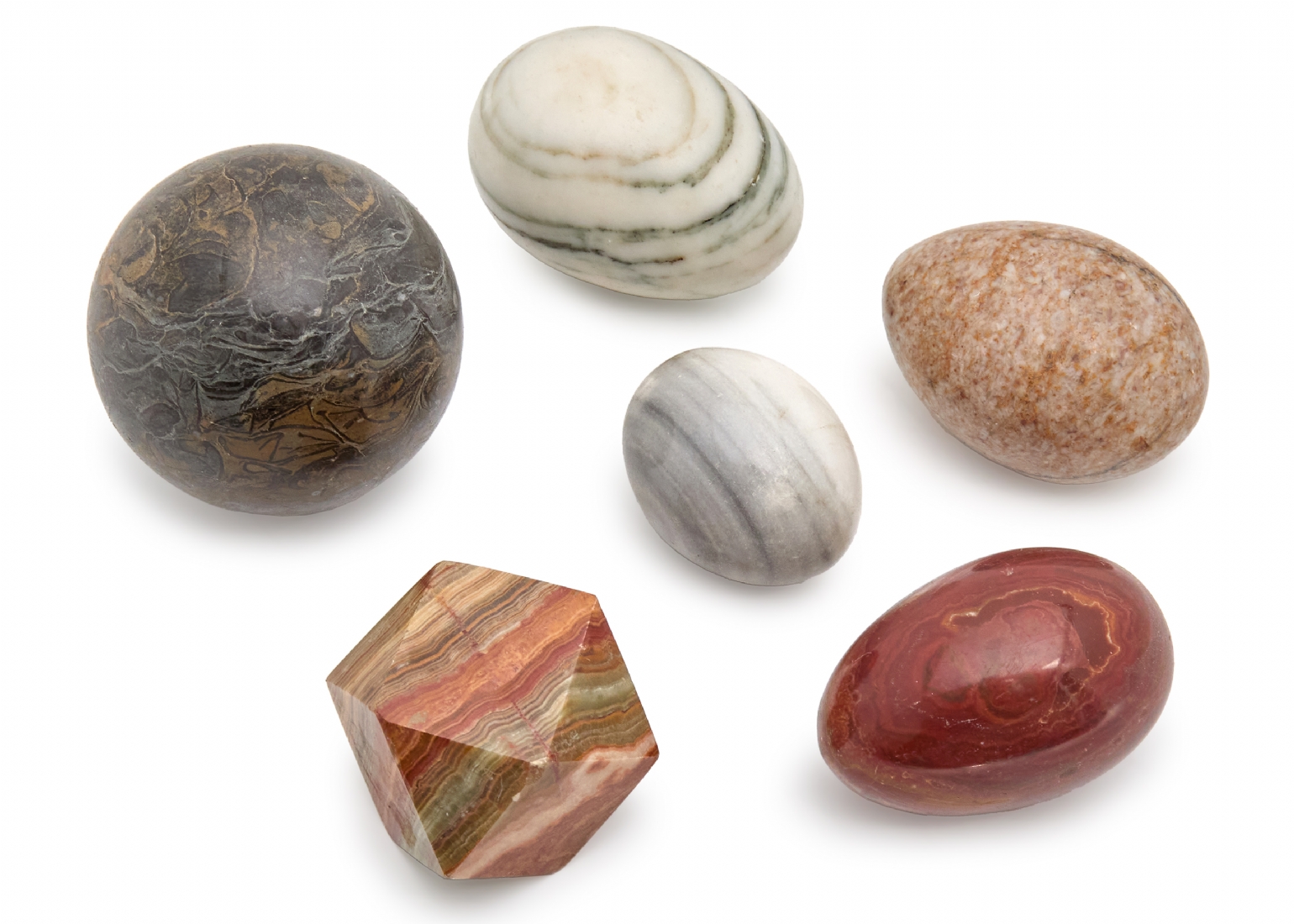 לוט של 6 חפצי נוי עשויים סוגי שיש שונים