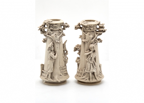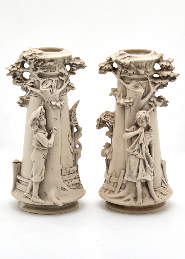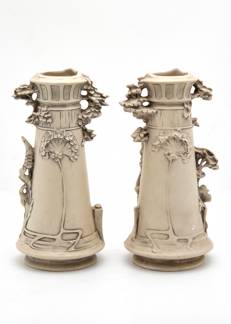 זוג אגרטלים צ'כים מתקופת סגנון האר נובו, מתוצרת 'רויאל דקס' (Royal Dux)
