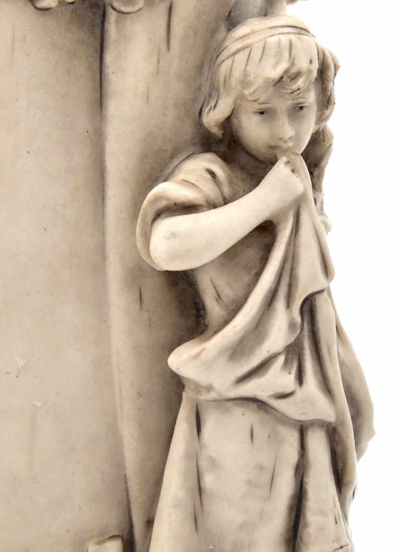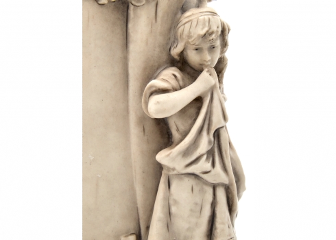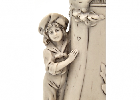 מעוטרים עיטורי בלט בדמות נערה ונער תחת עצים וחתום