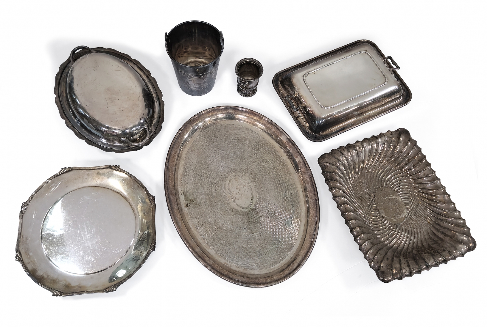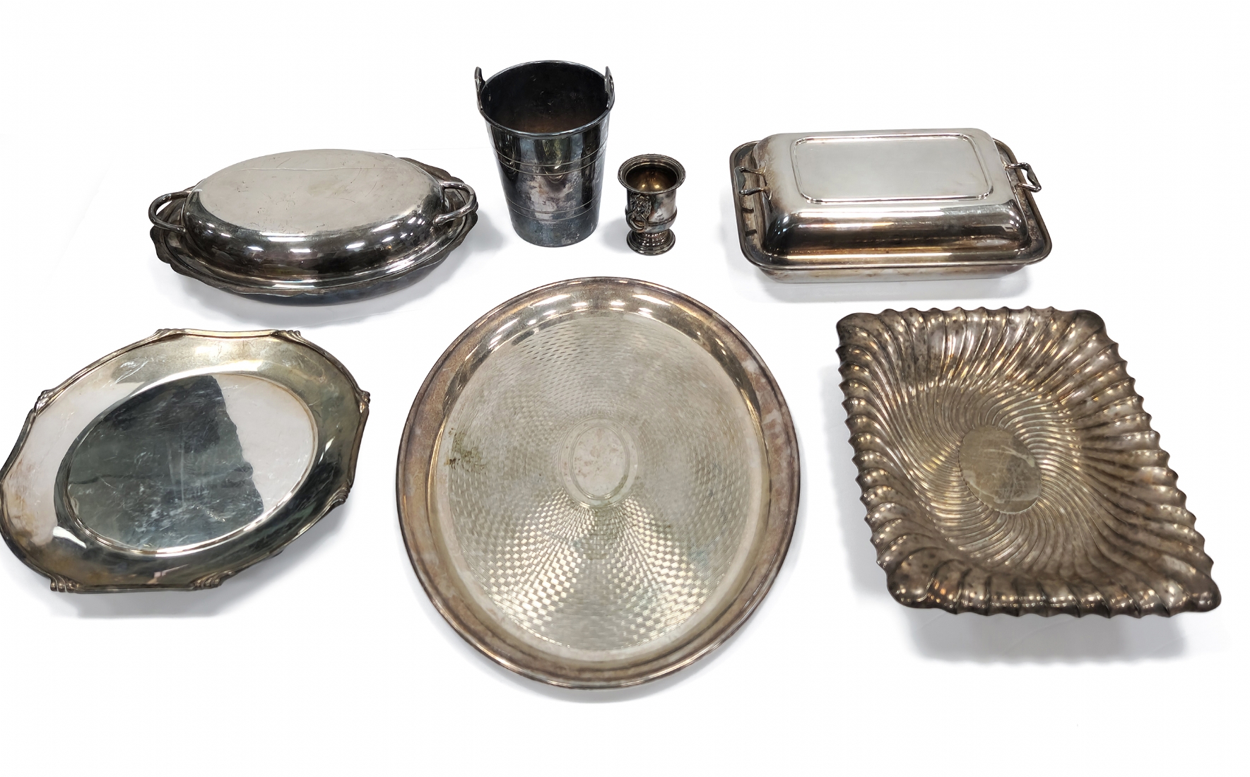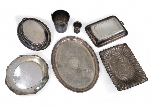 שבעה כלים עשוים מתכת ומצופים כסף, חלקם חתומים
