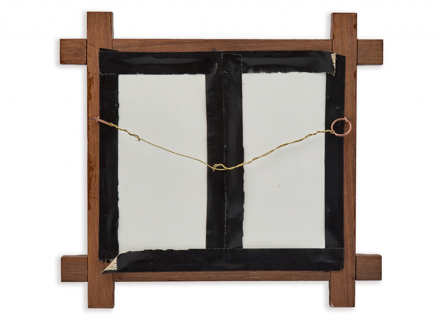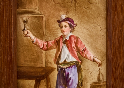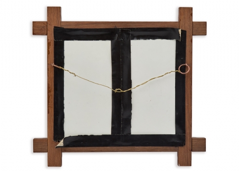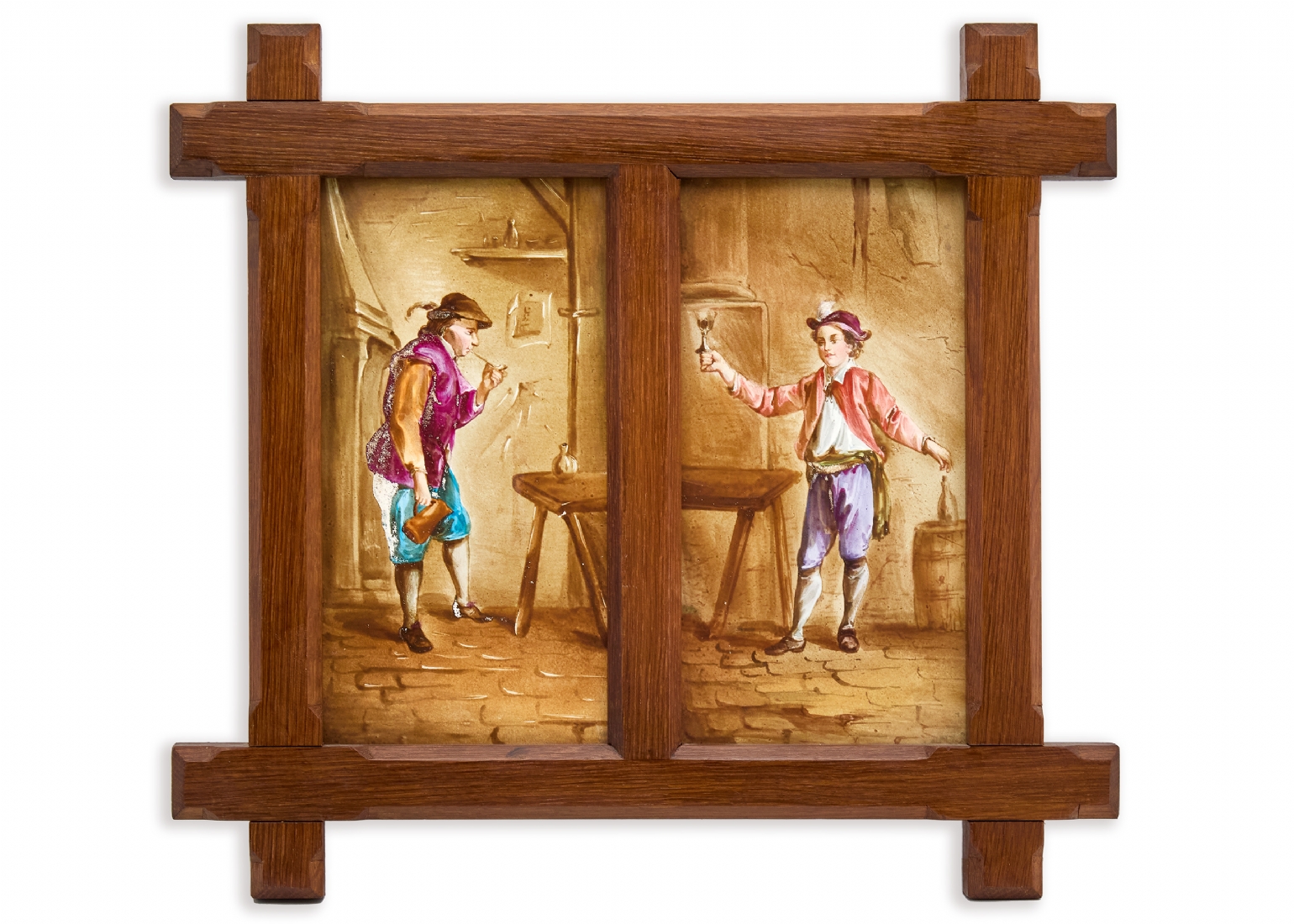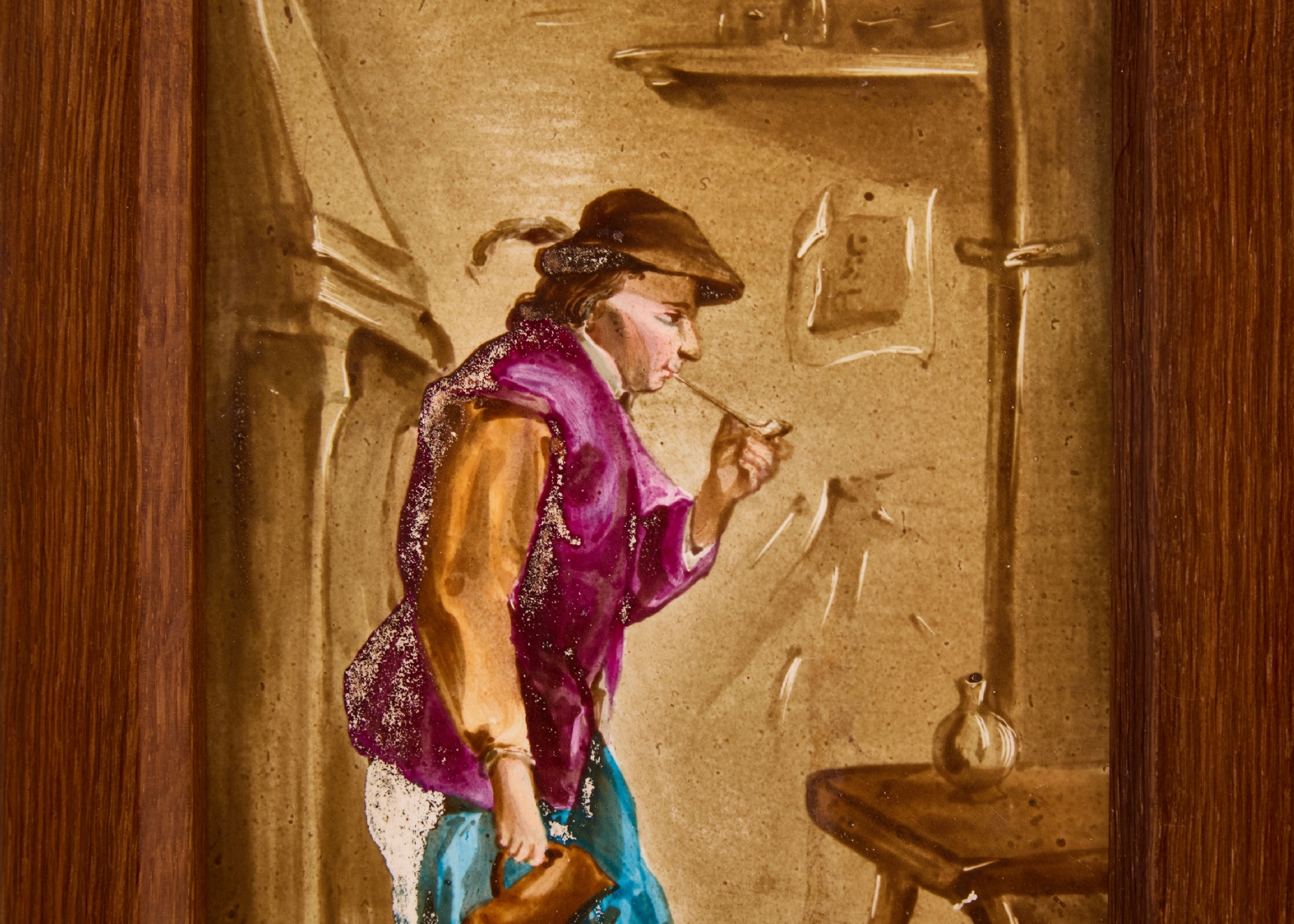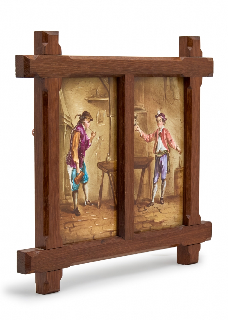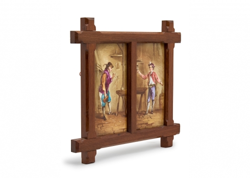 אריח פורצלן עתיק, מעוטר בציורי יד, מסגרת עץ