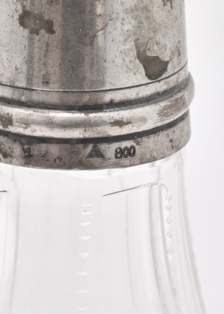 2. בקבוק גרמני עתיק ופקק תואם, עשוי קריסטל מלוטש בעבודת יד שפה ופקק עשויים כסף '800'