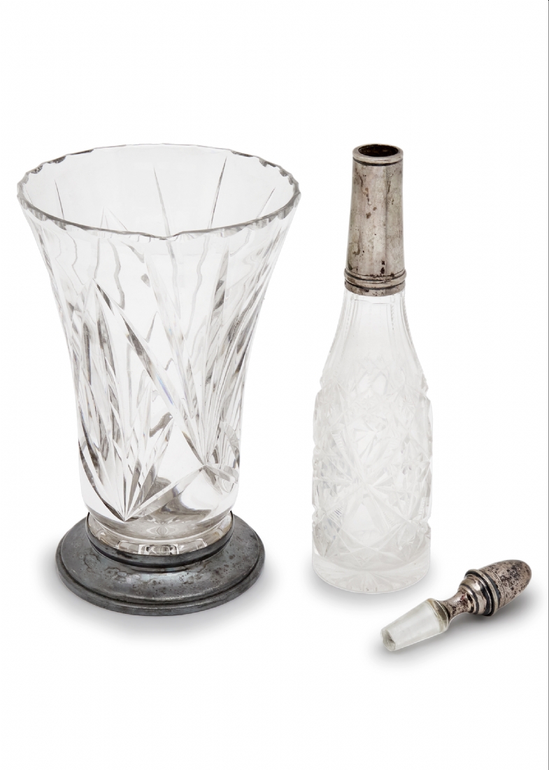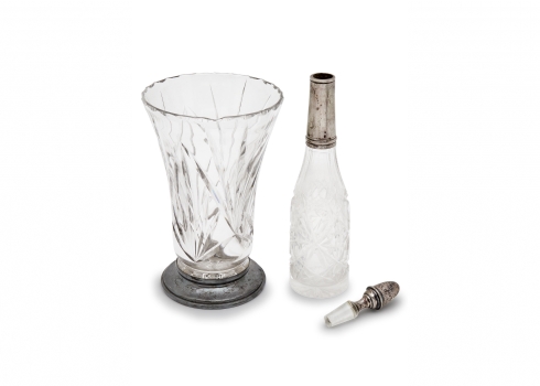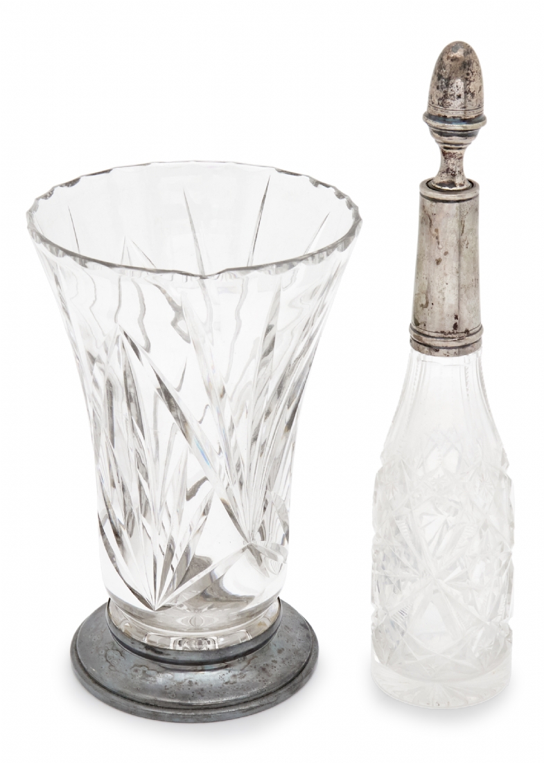 שני חפצי נוי עתיקים מקריסטל משולבים כסף '800' ומתכת מצופה כסף
