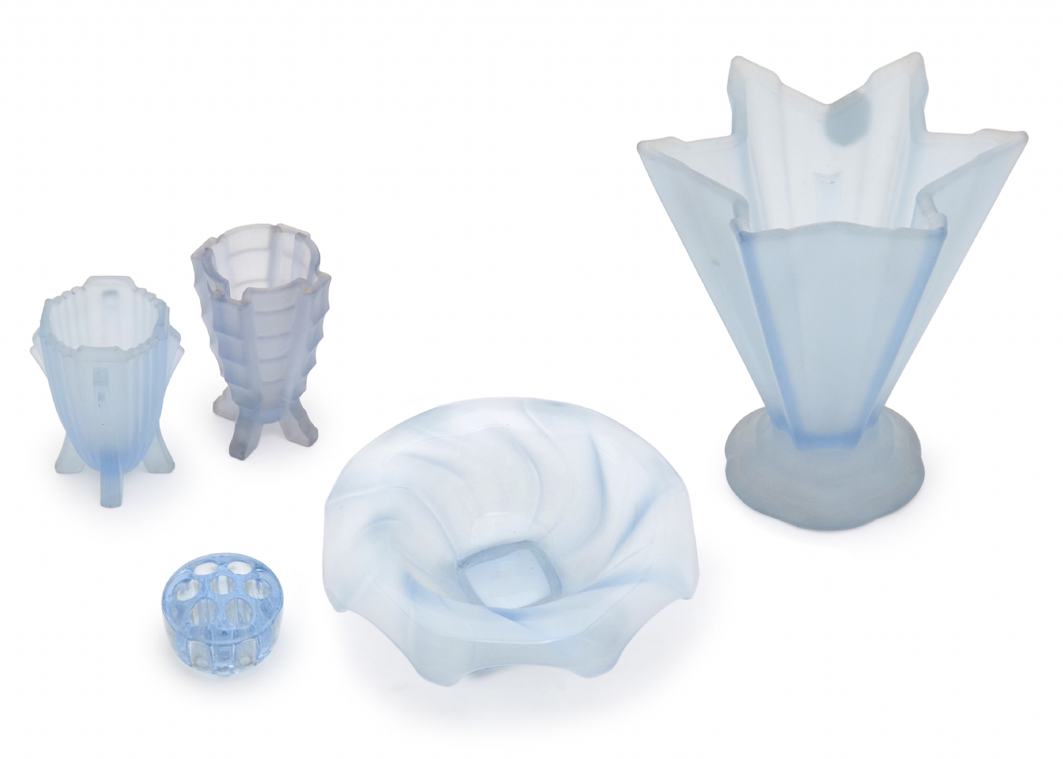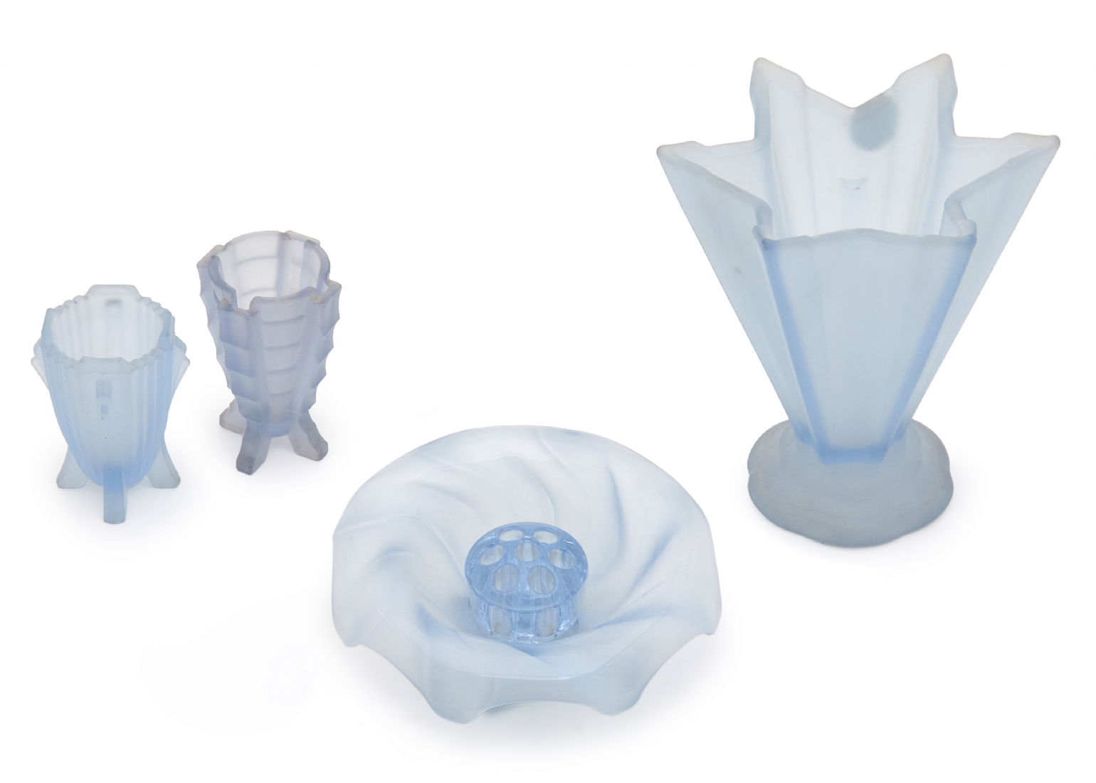 ארבעה פריטי ארט דקו מזכוכית כחולה מט (Frosted Glass)