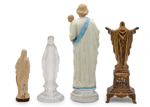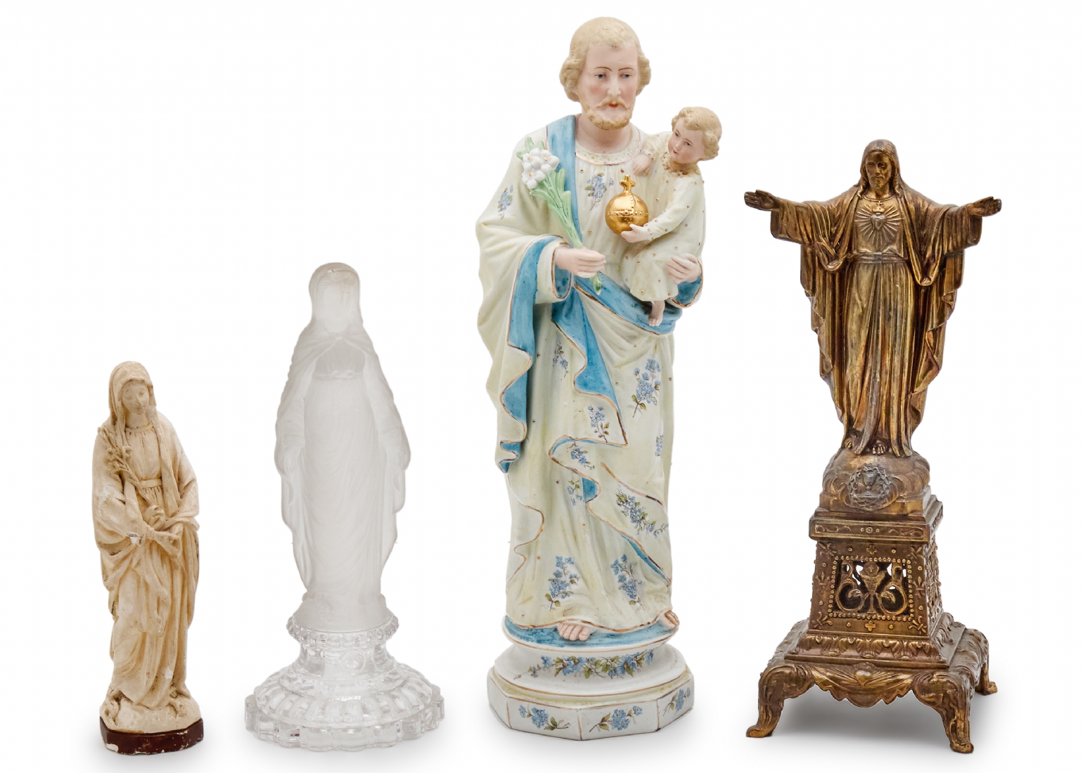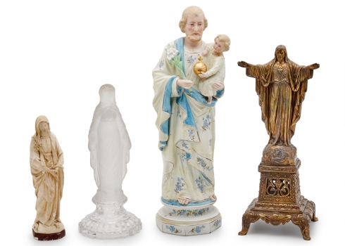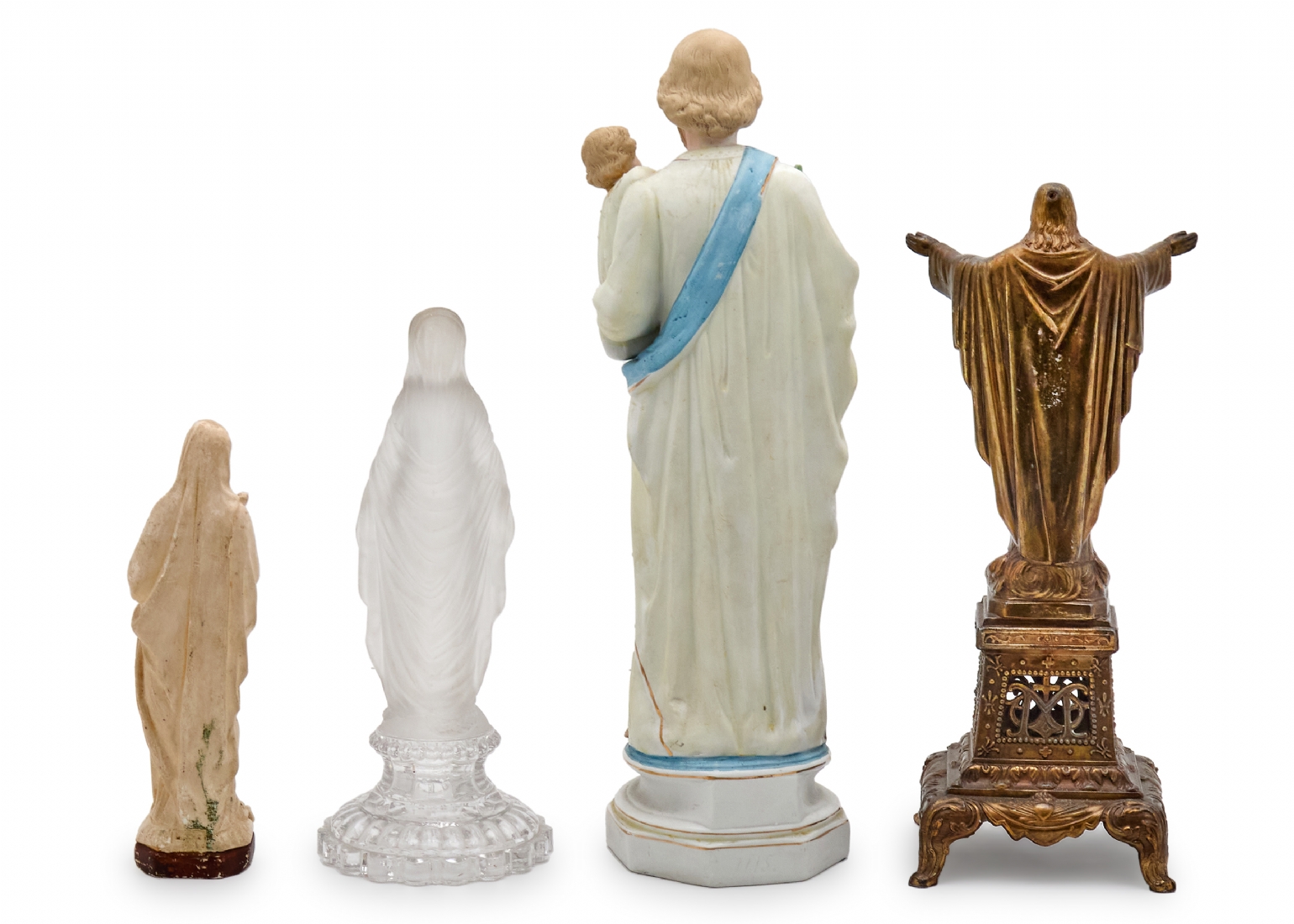 ארבעה פסלים נוצרים עשויים ביסקוויט צבוע, נחושת, חומר יצוק וזכוכית יצוקה