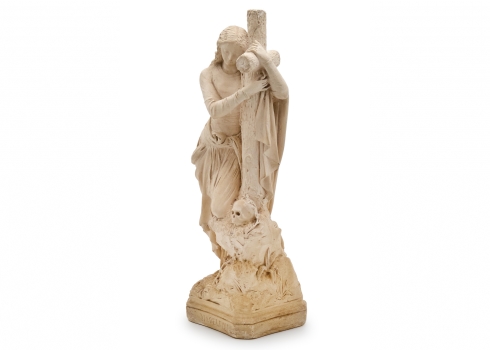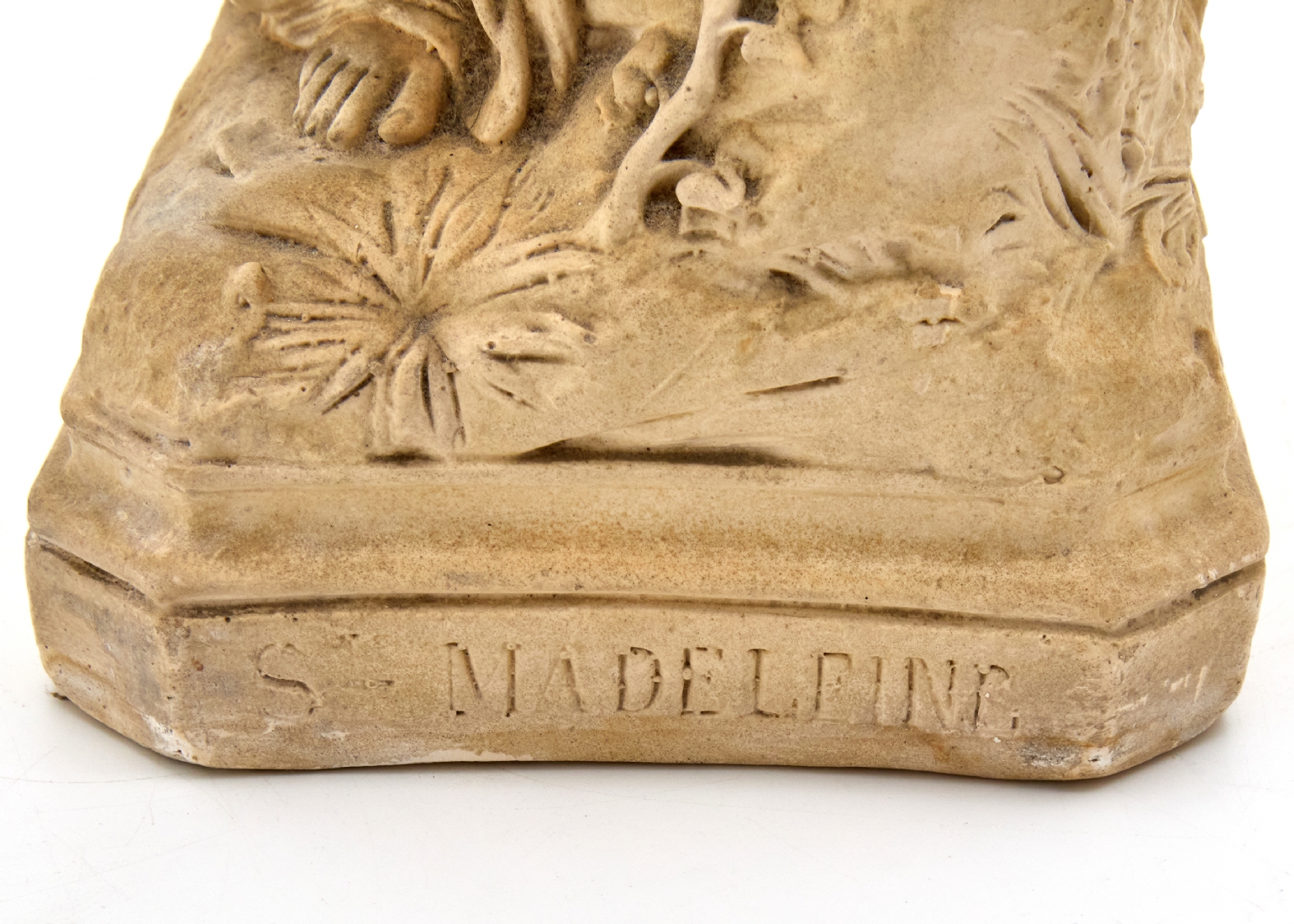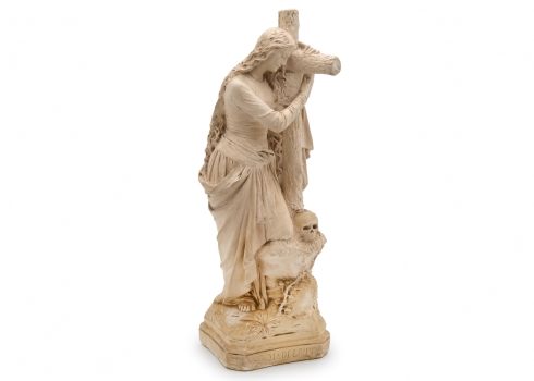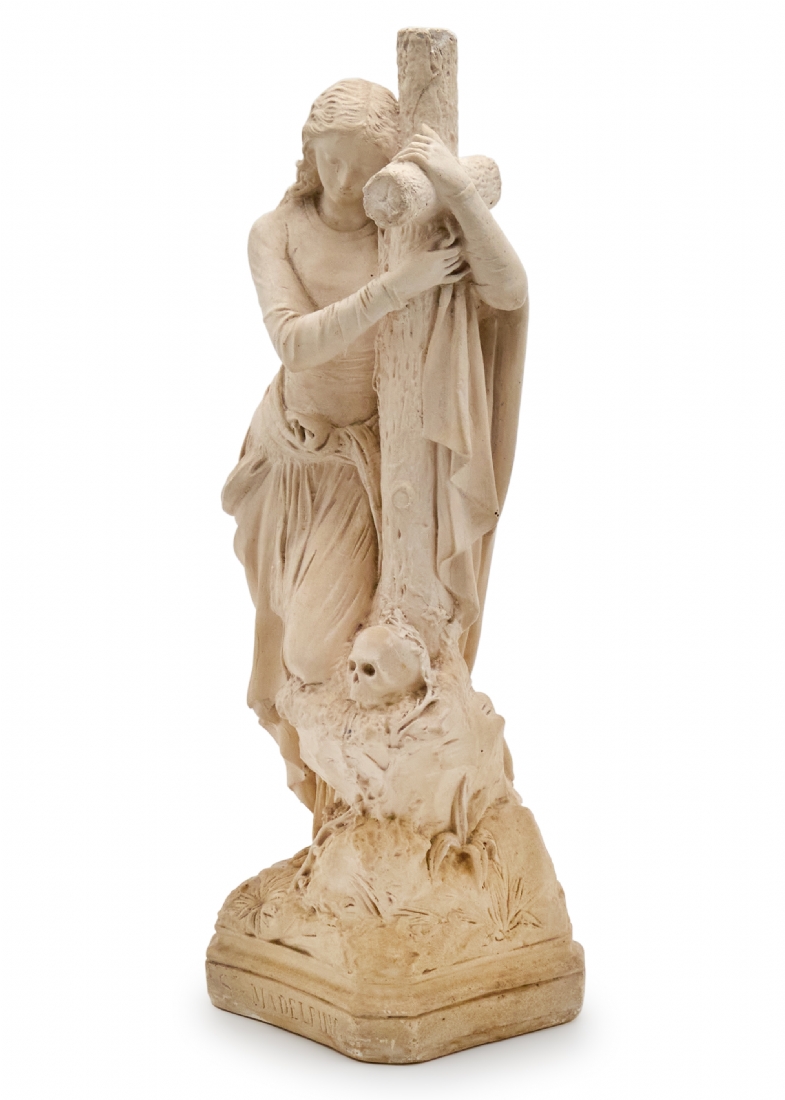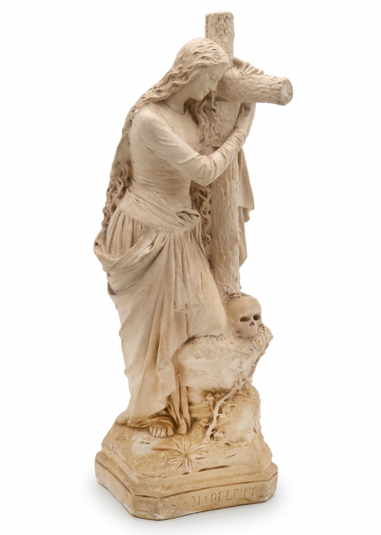 פסל גבס נוצרי גדול בדמותה של הנזירה הצרפתייה והקדושה מדלן סופי ברט, חתום
