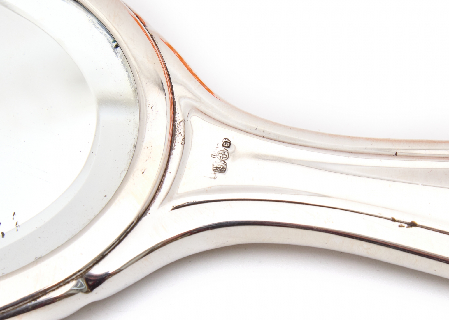 סט טואלט קלאסי הכולל מראת יד ושתי מברשות יד עשויות מתכת מצופה כסף
