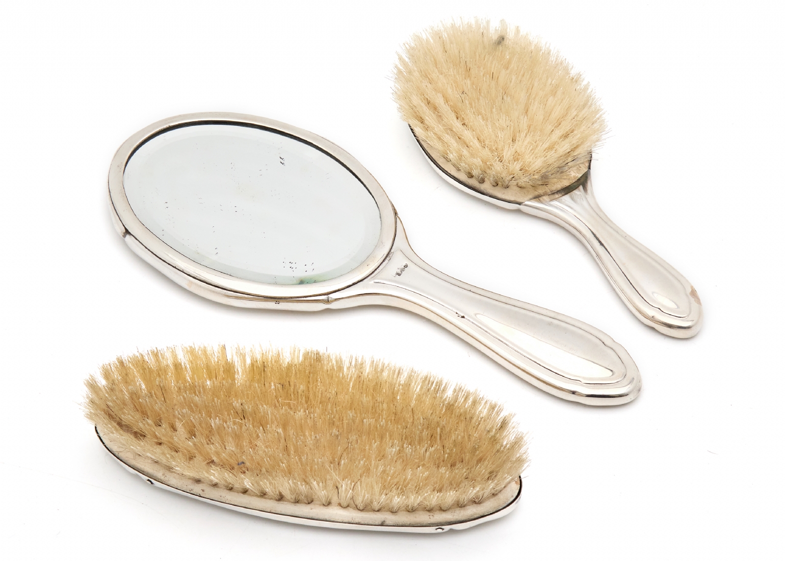 מברשת שיער ומברשת בגדים, עשויות מתכת מצופה כסף
