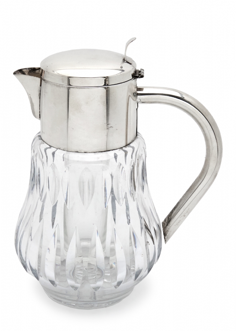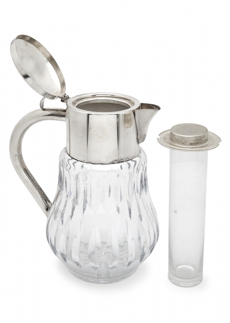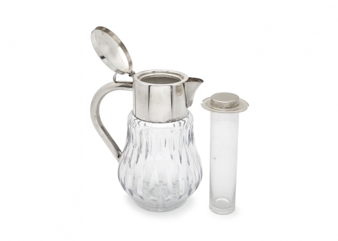 קנקן להגשת שתיה קרה עשוי קריסטל ומתכת מצופה כסף, כולל מבחנה לקוביות קרח