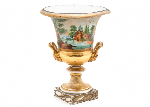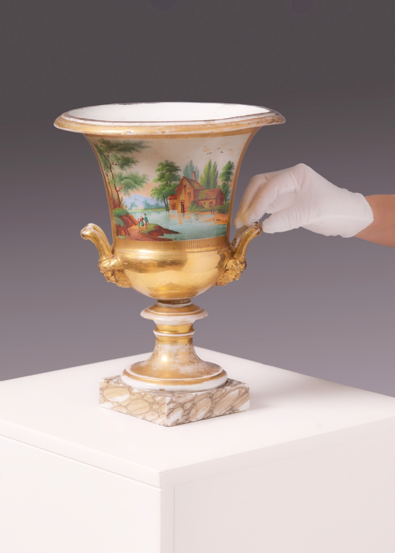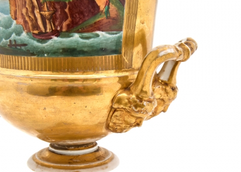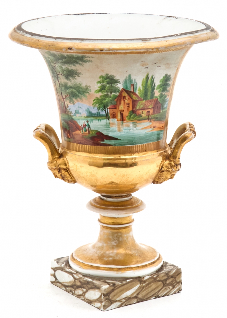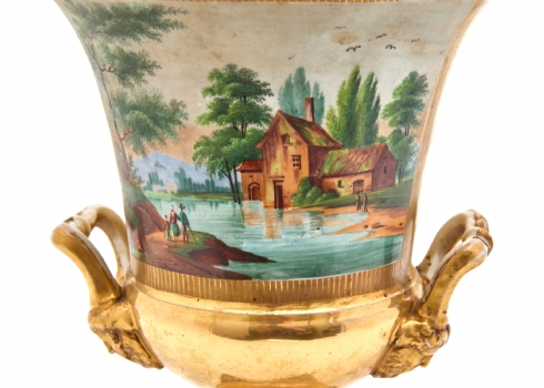 אגרטל פורצלן צרפתי גדול ועתיק, Old Paris, 1830–1850, ציורי יד