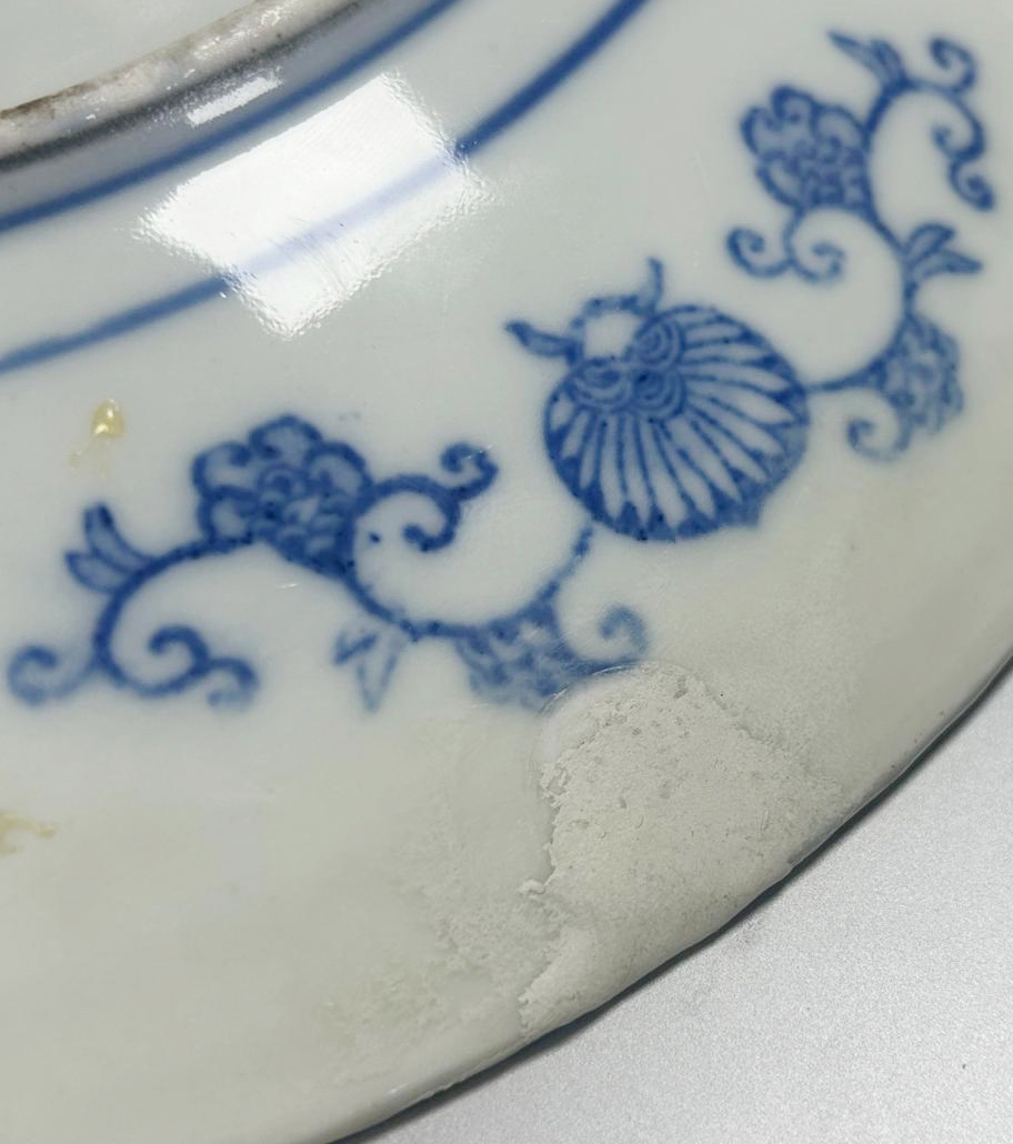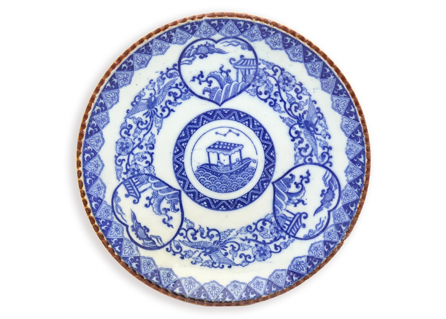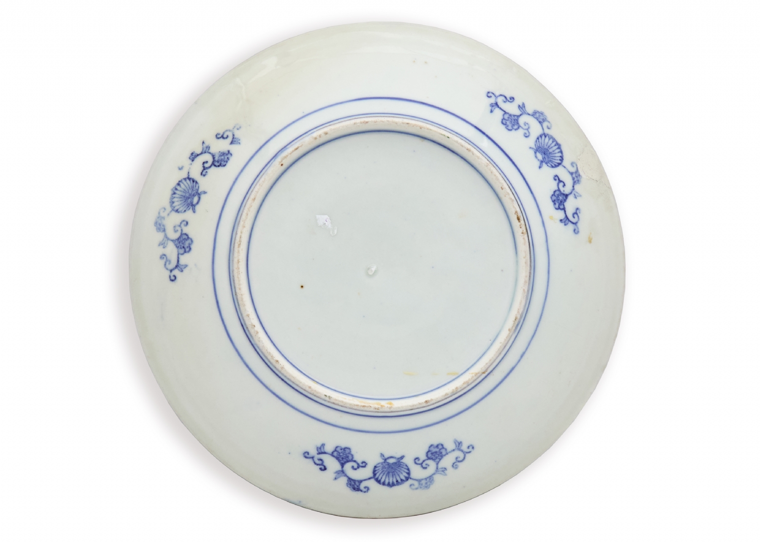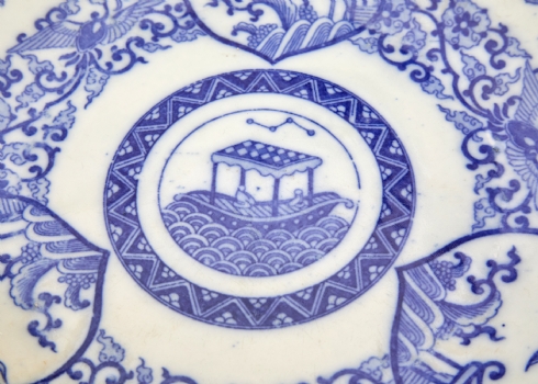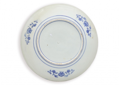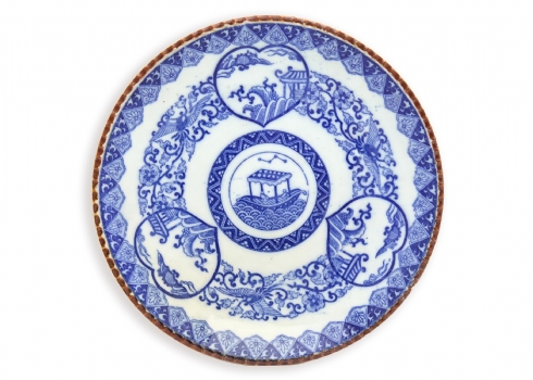 צלחת 'איגהזרה' (Igezara) יפנית עתיקה, עשויה פורצלן מעוטרת בהדפס מועבר בכחול