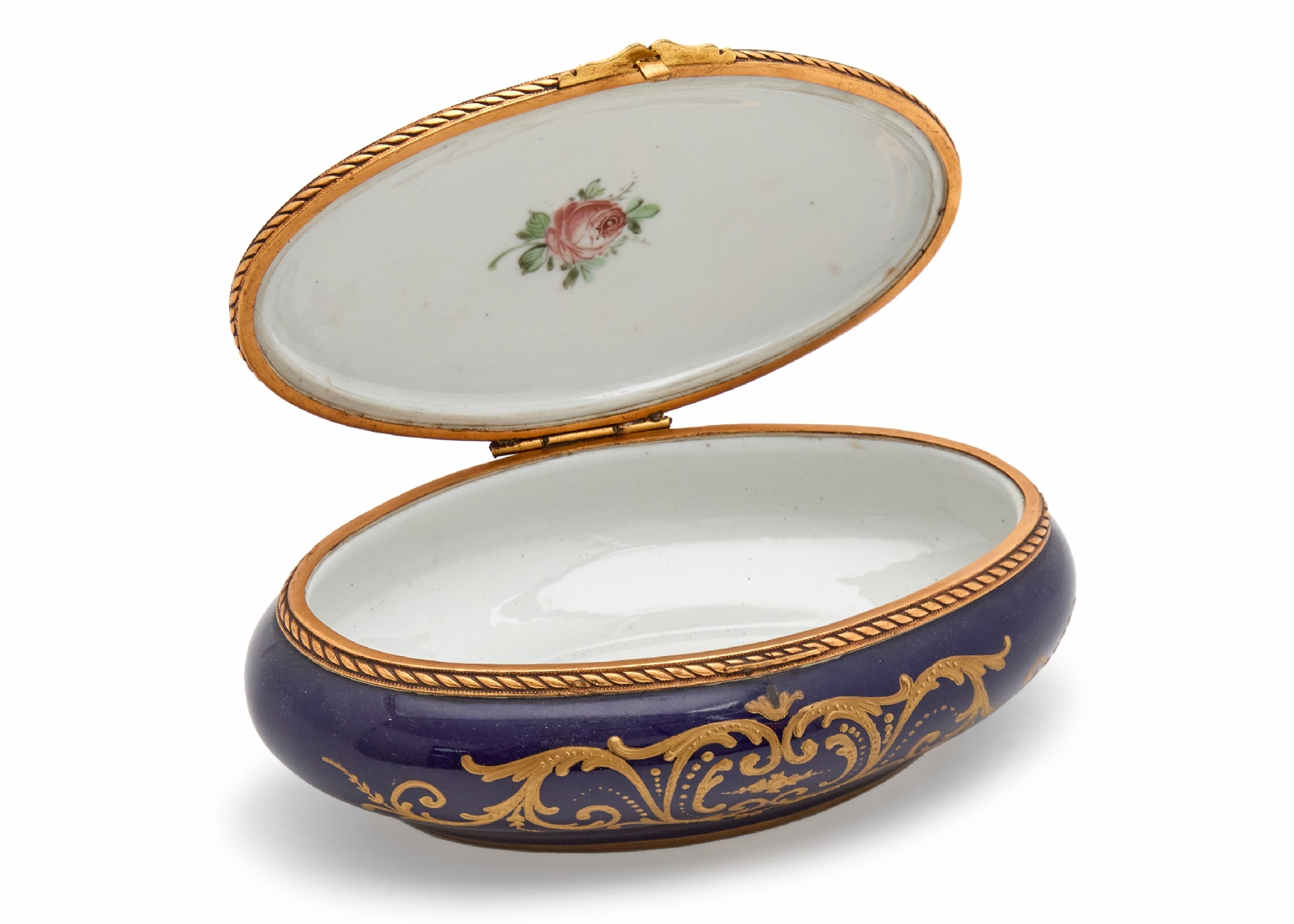 קופסא צרפתית שולחנית מפורצלן, בסגנון סוורה (Sevres), חתומה