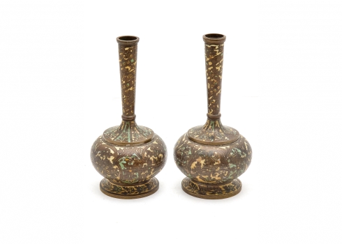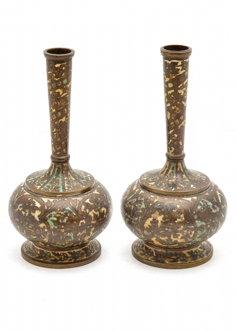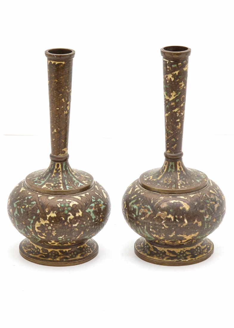 זוג אגרטלים פרסיים עתיקים, מתחילת המאה ה-20, מעוטרים באמייל
