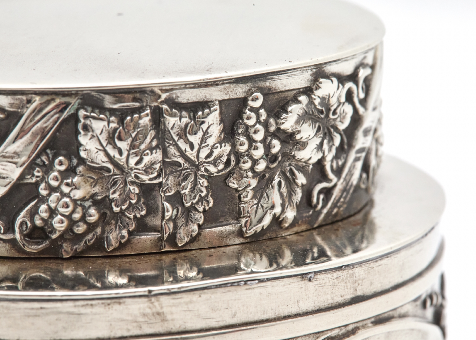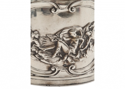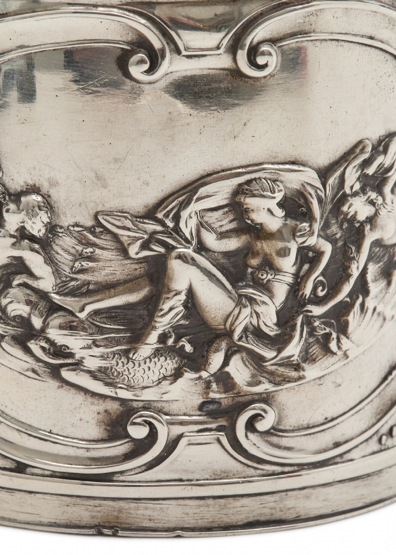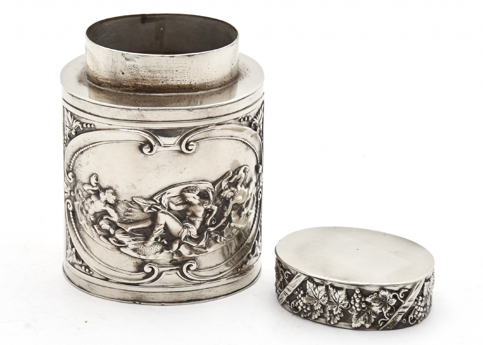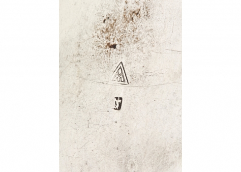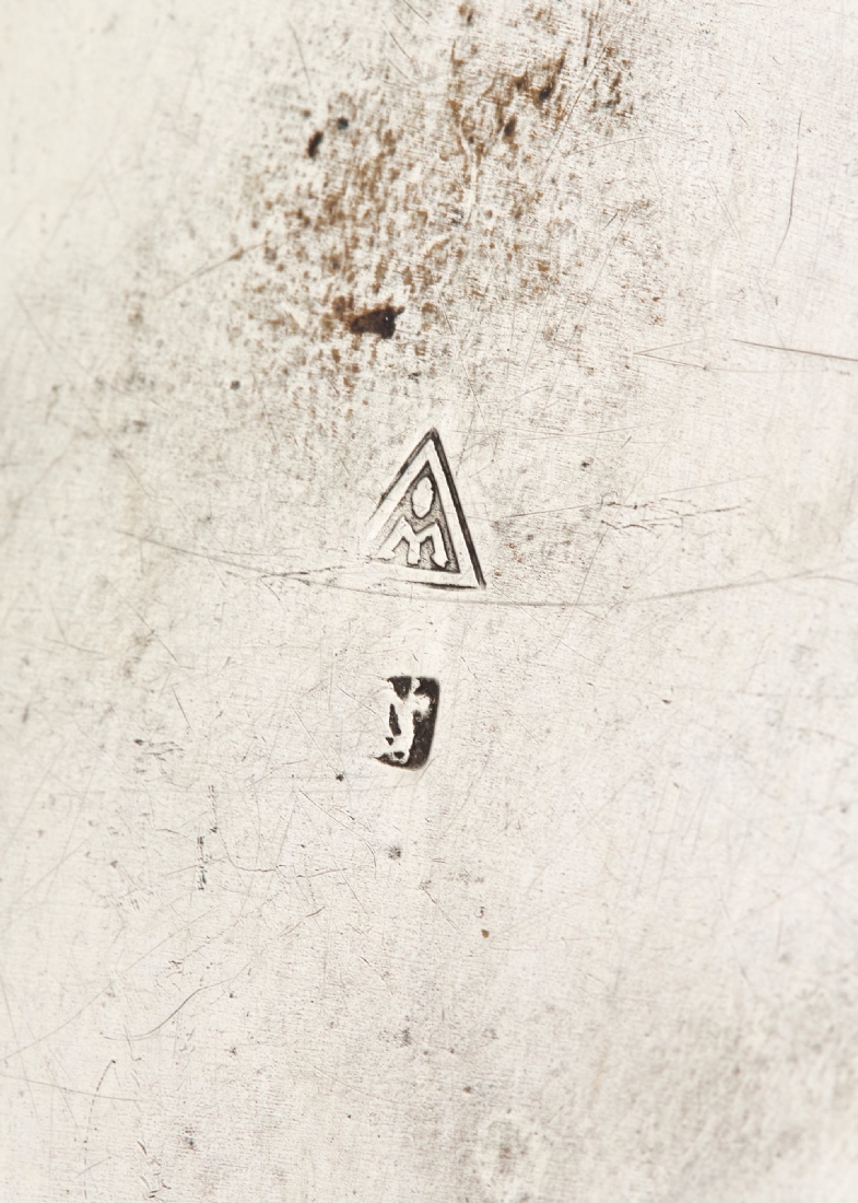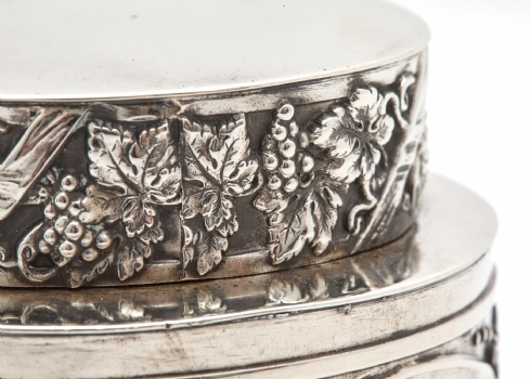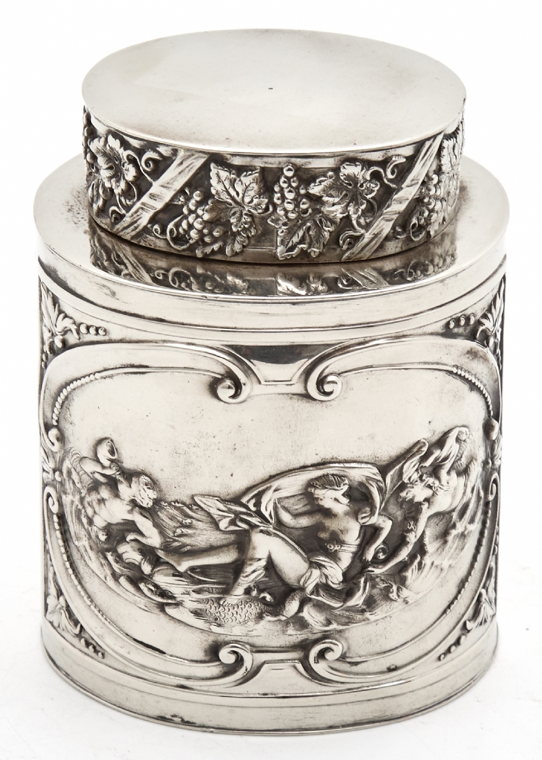 מיכל תה עתיק עשוי נחושת מצופה כסף, מעוטר וחתום
