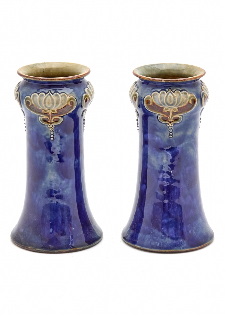 זוג אגרטלים אנגליים איכותיים עתיקים מעוטרים בעבודת יד, מתוצרת רויאל דולטון