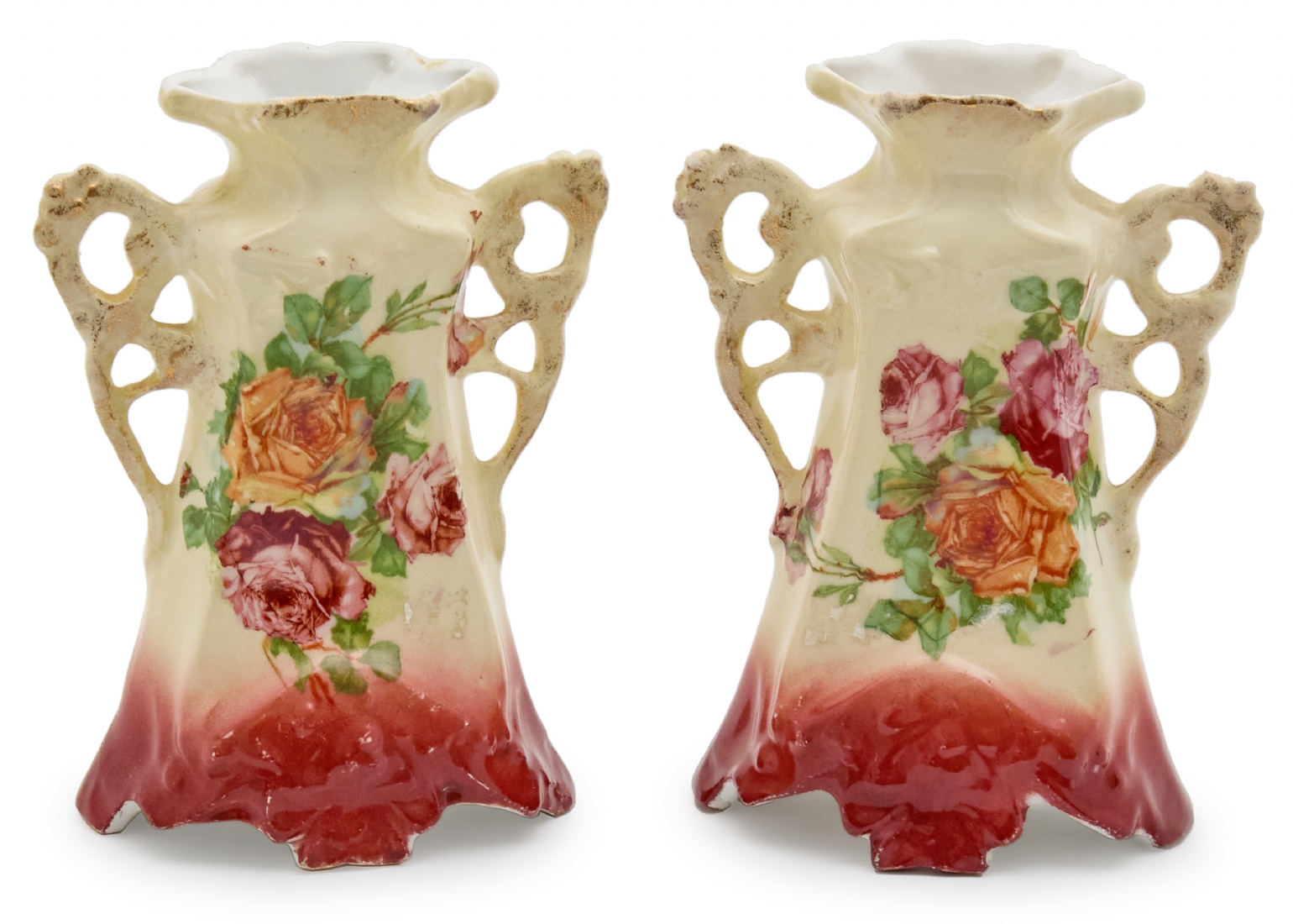 זוג אגרטלי פורצלן אנגליים עתיקים, מהמאה ה-19 (ויקטוריאניים)
