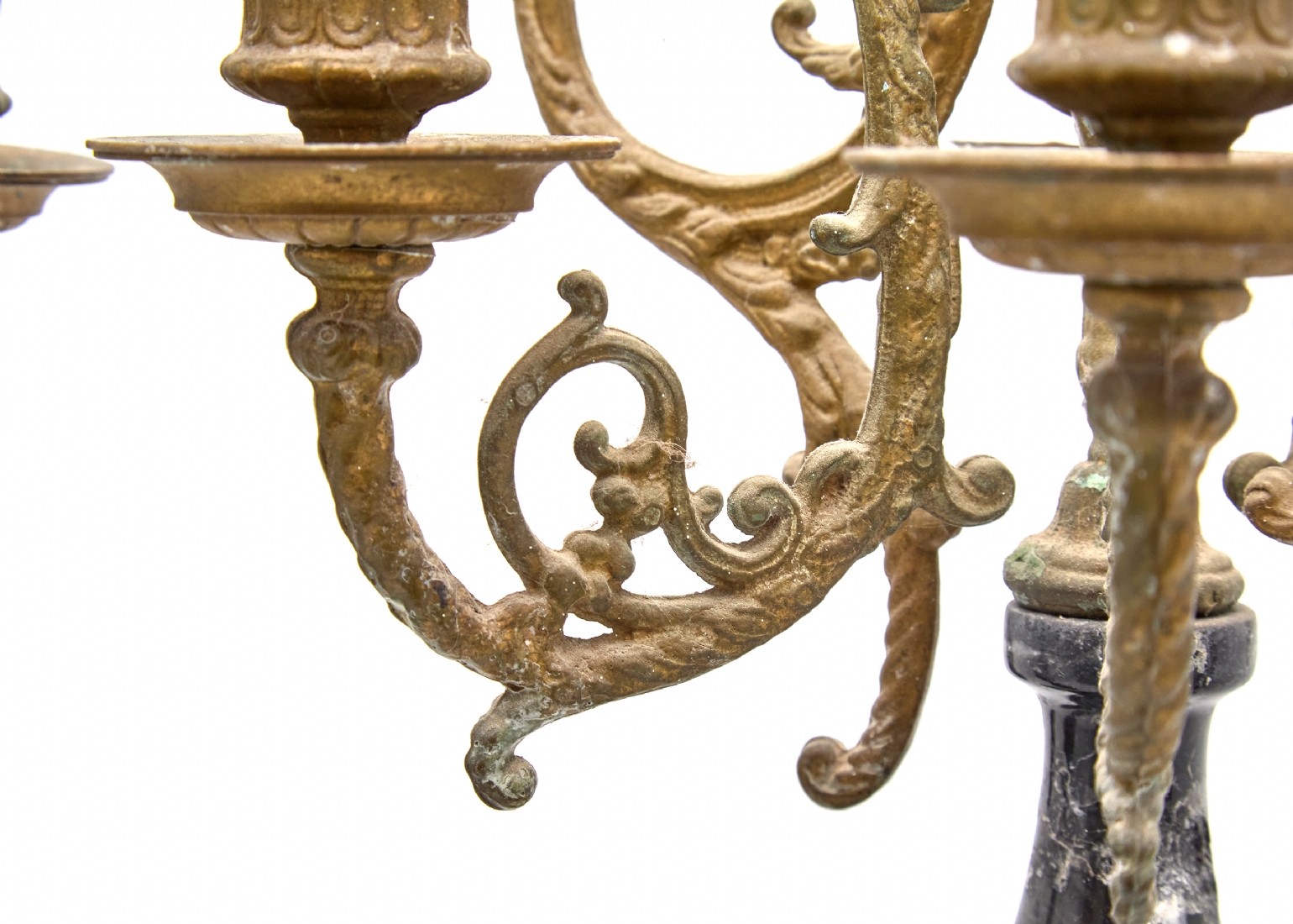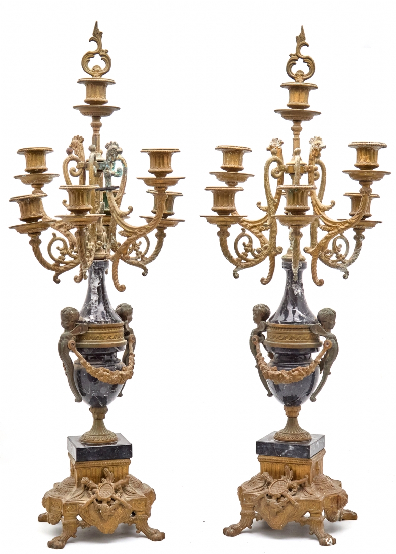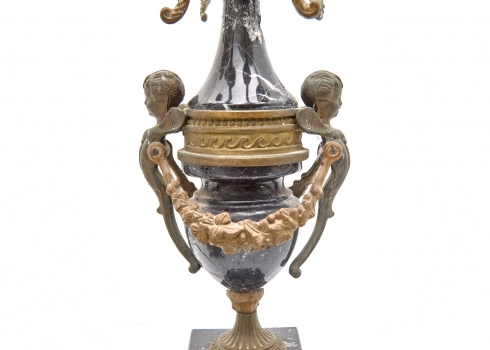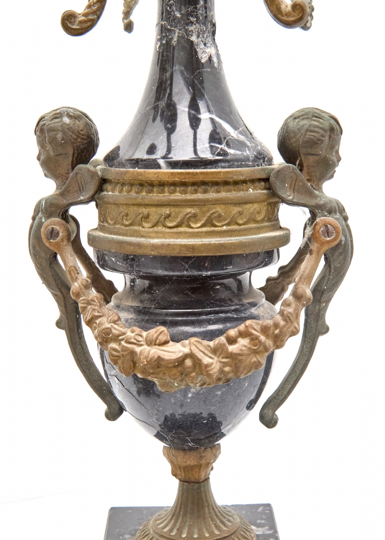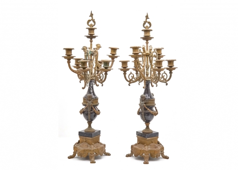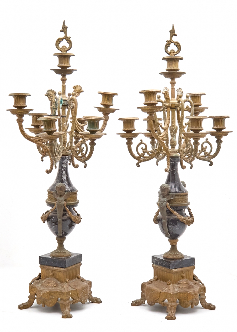 זוג קנדלברות עתיקות עשויות שיש וברונזה