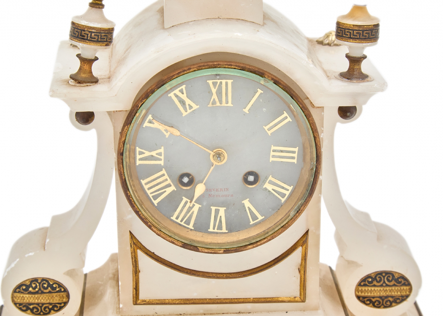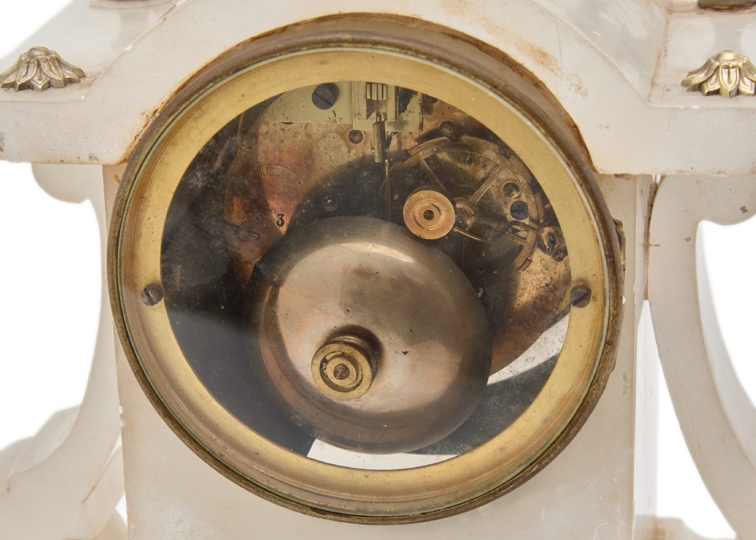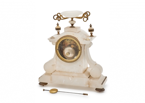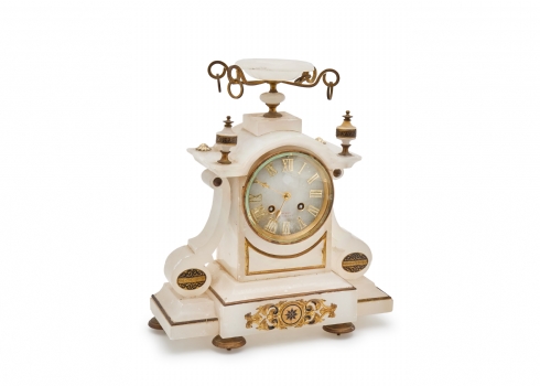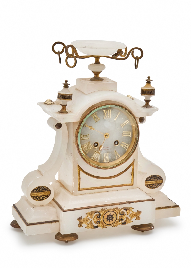 שעון בסגנון עתיק עשוי אלבסטר והתקני מתכת מוזהבים