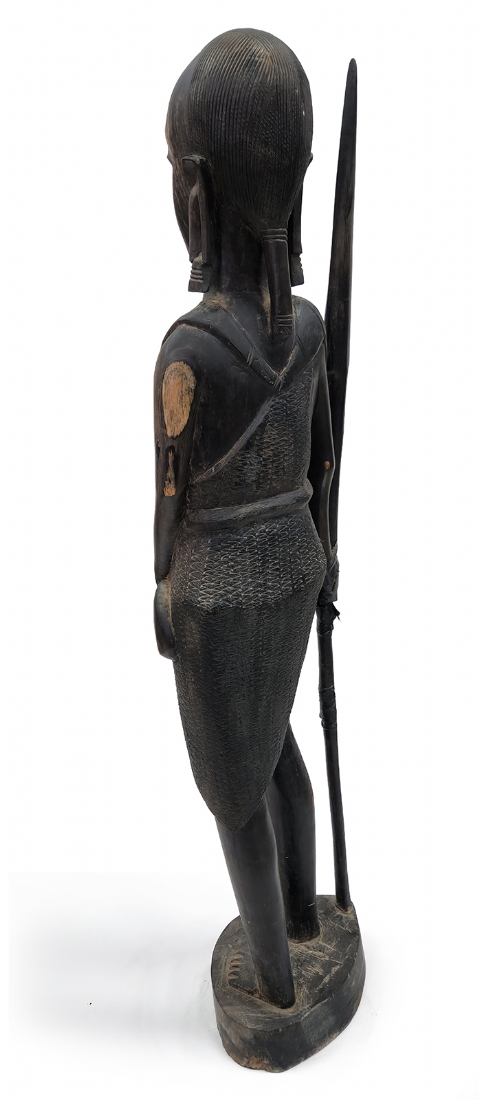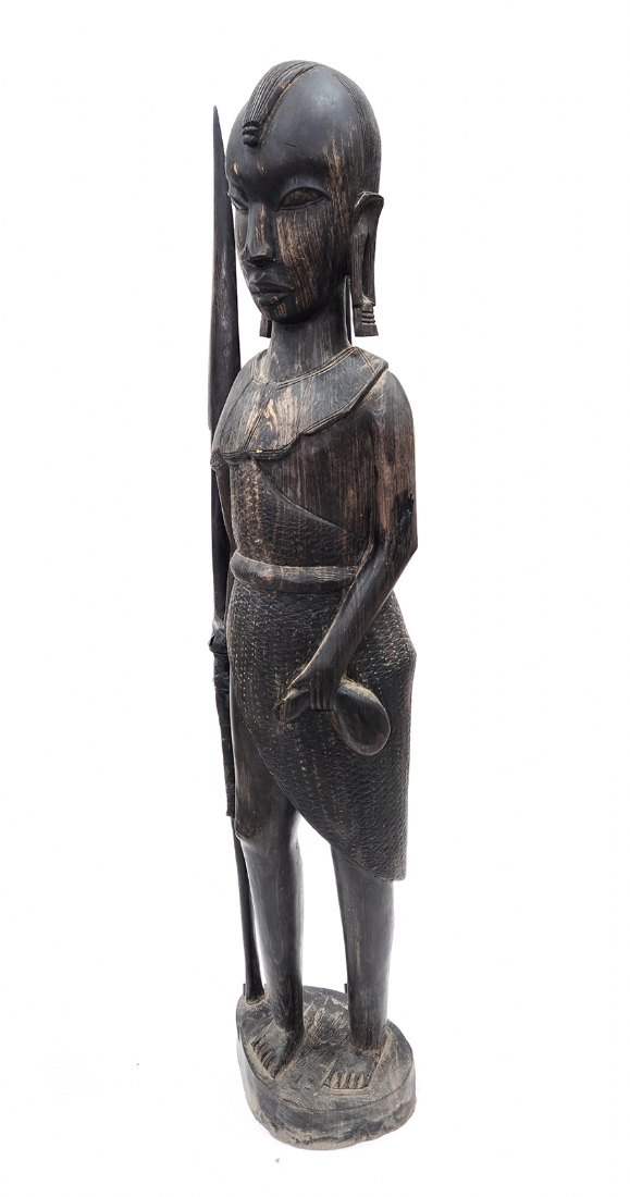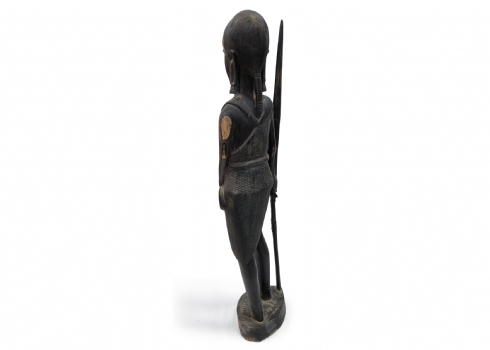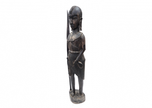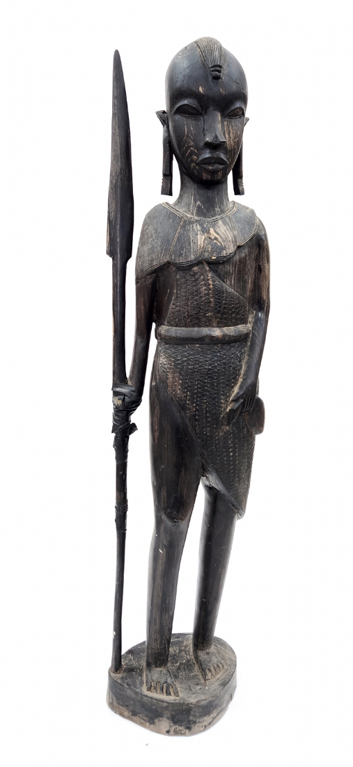 פסל ריצפה אפריקאי גדול מאד בדמות לוחם עשוי עץ מגולף בעבודת יד