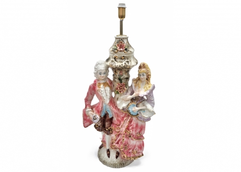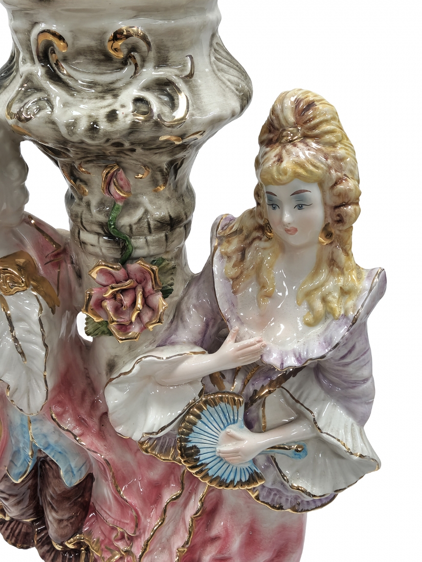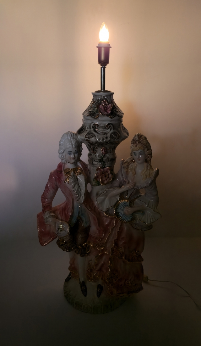 מנורת רצפה גדולת מיימדים עשויה פורצלן בדמות אדון וגברת