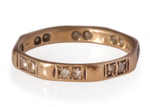 טבעת עתיקה עשויה זהב צהוב 9 קארט משובצת אבני זירקוניה