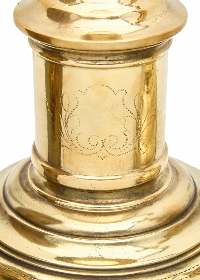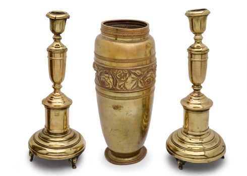 זוג פמוטים ואגרטל עשוים נחושת ופליז