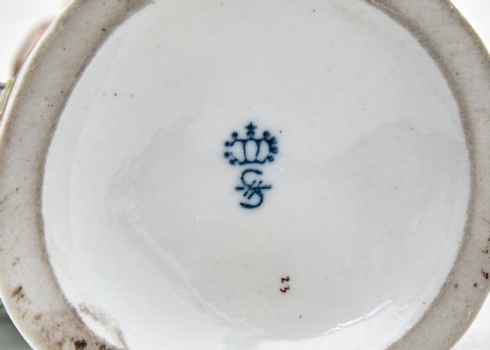 פסלון פורצלן גרמני מתוצרת Sitzendorf מעוטר בצביעת יד באמייל חתום